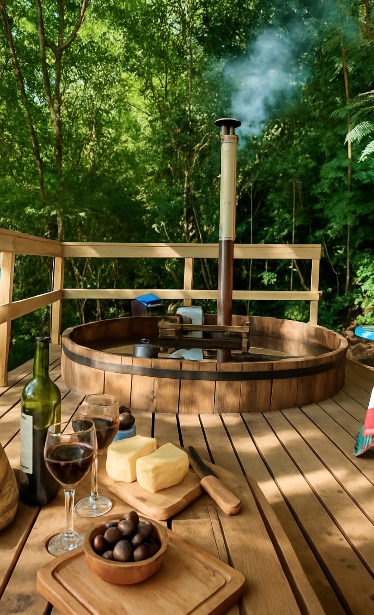 Disfruta de los sonidos de la naturaleza cuando te quedes en este lugar único. Acá podrás disfrutar de una caminata por los senderos hacia el manantial, escuchar el sonido de las aves y contemplar la belleza de los bosques del sur. Desde tu terraza y si el tiempo lo permite podras disfrutar de las estrellas al anochecer, disfrutar de nuestras tinajas calientes, Sauna o simplemente relajarte en la piscina.