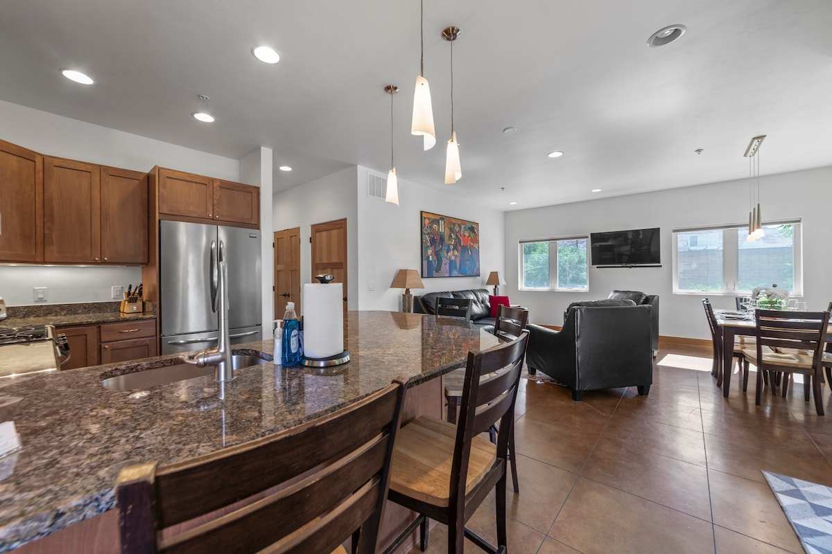 Bienvenue à Hidden Canyon Getaway, votre maison loin de chez vous. À seulement cinq miles au sud du centre-ville, cette maison de ville lumineuse et magnifiquement décorée combine la chaleur d'une résidence personnelle avec les équipements d'un complexe hôtelier, offrant l'équilibre parfait entre détente et aventure. Avec 3 chambres spacieuses, 2,5 salles de bain, un salon loft confortable et un garage pour deux voitures pour tous vos vélos, jeeps ou équipements d'aventure, cette maison a été conçue pour les familles, les couples et les explorateurs qui recherchent à la fois confort et commodité.