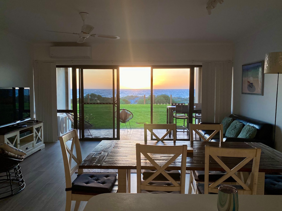 Vue sur la mer et connexion Wi-Fi gratuite. Bel appartement moderne de 2 chambres avec kitchenette entièrement équipée, climatisation à cycle inversé et Wi-Fi NBN. La pergola confortable offre une vue sur la mer et se trouve à 2 minutes à pied de la plage. Ce logement peut accueillir confortablement 2 couples ou une petite famille, offrant un lit Queen Size, une télévision et un Chromecast dans la chambre 1, et un lit double avec lit gigogne simple, une télévision et un Chromecast dans la chambre 2. Le salon dispose d'une télévision connectée de 55 pouces avec Netflix, les applications Stan et YouTube et Chromecast.