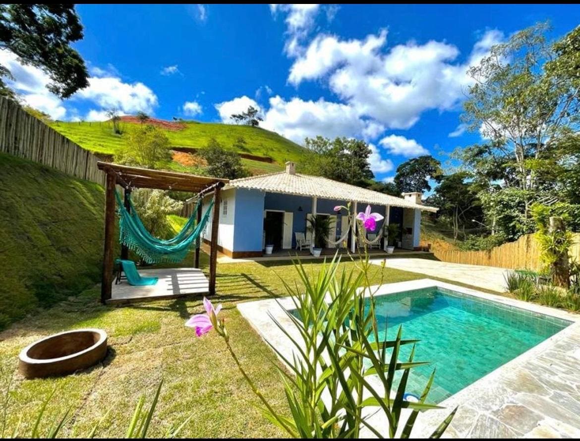 Maison confortable et moderne, avec belle vue sur la montagne, 3 suites confortables, piscine chauffée, barbecue, vaste espace vert, brasero, hamac et balançoire. La maison est située dans une copropriété calme, dans un emplacement privilégié, avec un accès facile à la BR 040, à 5 minutes du domaine viticole Borgo Del Vino, de Celeiro Monte Alto et du centre-ville d’Areal, à côté du parc municipal d’Areal, à 20 minutes du centre gastronomique d’Itaipava. Environnement idéal pour se reposer, profiter en famille et entre amis.