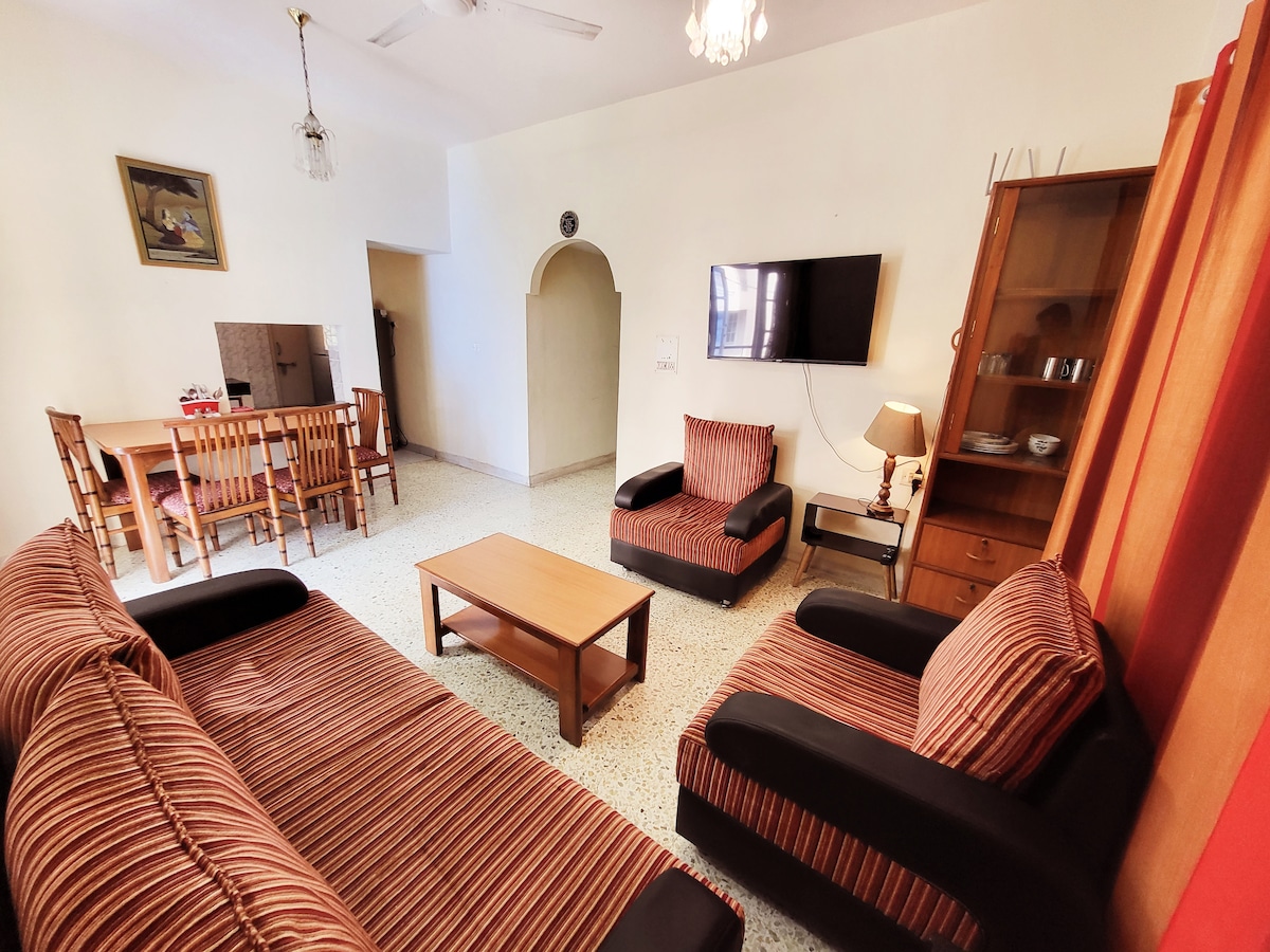 Bienvenue dans notre appartement 1-BHK récemment rénové et spacieux, idéal pour les couples et les familles à la recherche de confort et de commodité. La chambre dispose d'un lit Queen Size et d'un matelas orthopédique moelleux pour une nuit de sommeil paisible. Détendez-vous dans le grand salon avec une télévision connectée de 43 pouces, une connexion Wi-Fi ultra-rapide et un espace de travail dédié. Livré avec une salle de bain super propre et approvisionnée en produits de première nécessité. La cuisine entièrement équipée comprend des ingrédients de base, des appareils de haute qualité et de la vaisselle pour vos aventures culinaires !
