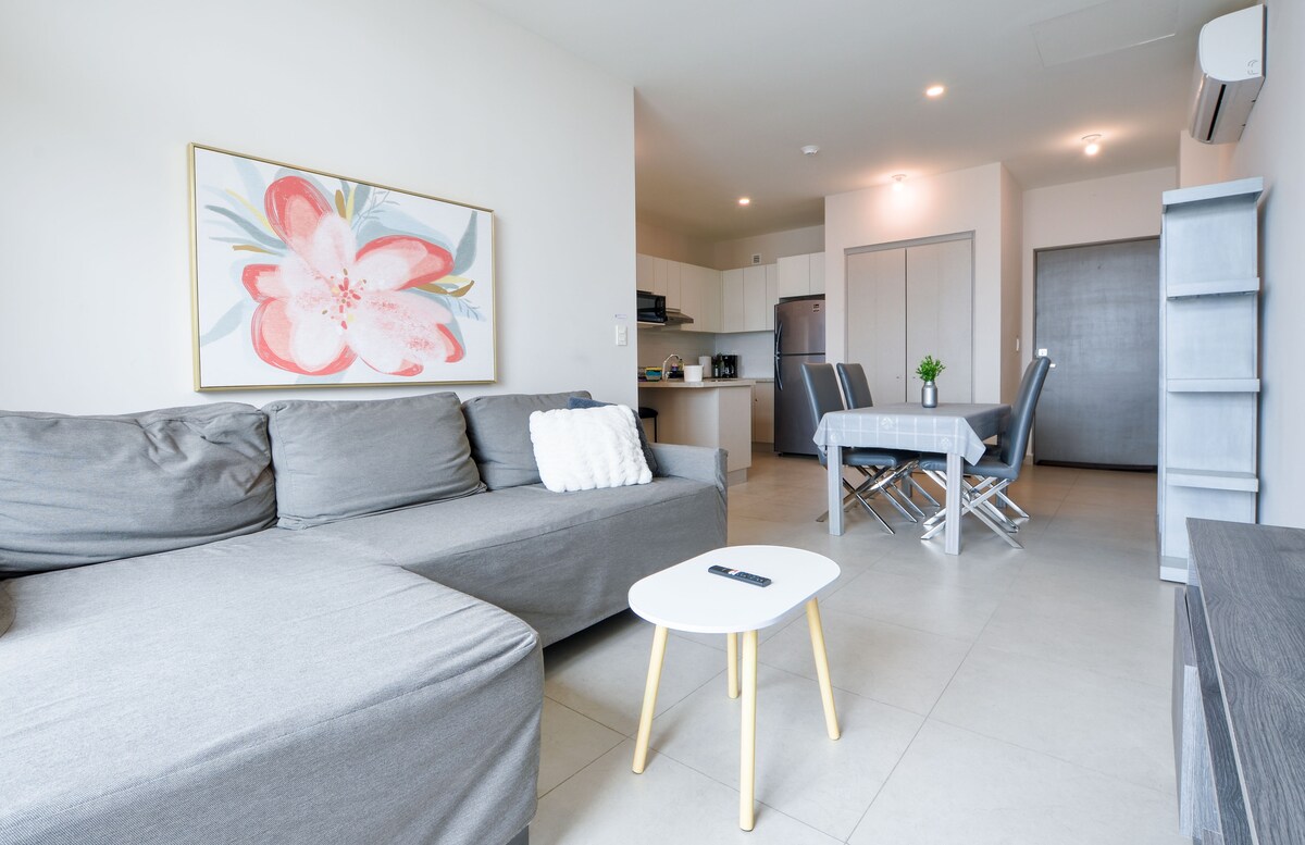 Bonjour et bienvenue dans votre nouvelle maison temporaire, avec le meilleur emplacement de Monterrey ! Nous sommes situés juste en face de l'Arena Monterrey et de l'emblématique Parque Fundidora. Check in 15 h 00 Check out 11:00 L'appartement dispose de deux chambres : • Chambre 1 : lit queen size et salle de bain privée dans la chambre. • Chambre 2 : deux lits simples, avec une salle de bain complète à l'extérieur de la chambre. En outre, l'appartement comprend un salon, une salle à manger, une cuisine et une buanderie.