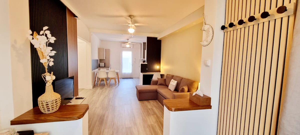 Venez profitez du calme de cet appartement climatisé et indépendant, paisible au coeur du vieux village d’Argeles sur mer, et entièrement refait à neuf en 2022. Au calme mais à proximité du centre village, vous pourrez séjournez à 2, ou 4 grâce au canapé convertible du séjour, et profitez de la terrasse donnant sur la rivière et la nature. L’accès aux plages est à 5 mn en voiture, 30mn à pied, il y a des navettes toute l’année et des vélos électriques, plus d’infos sur daqui-mobilité.fr.