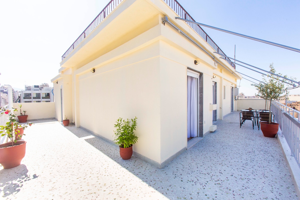 A beautiful and sunny 65sqm apartment + 65 sq.m cycladic style terrace. The appartment is located in Piraiki the most idyllic area of Piraeus. Piraiki is famous for fish taverns and the best Sunset of Athens. Beach,tavernas,bus stop,supermarket,bakery are all within walking distance. Ideal location for those who are interested in island hopping. Most of the Greek Islands are linked by ferry to Piraeus Port and our house is only 10 minutes far from the port.