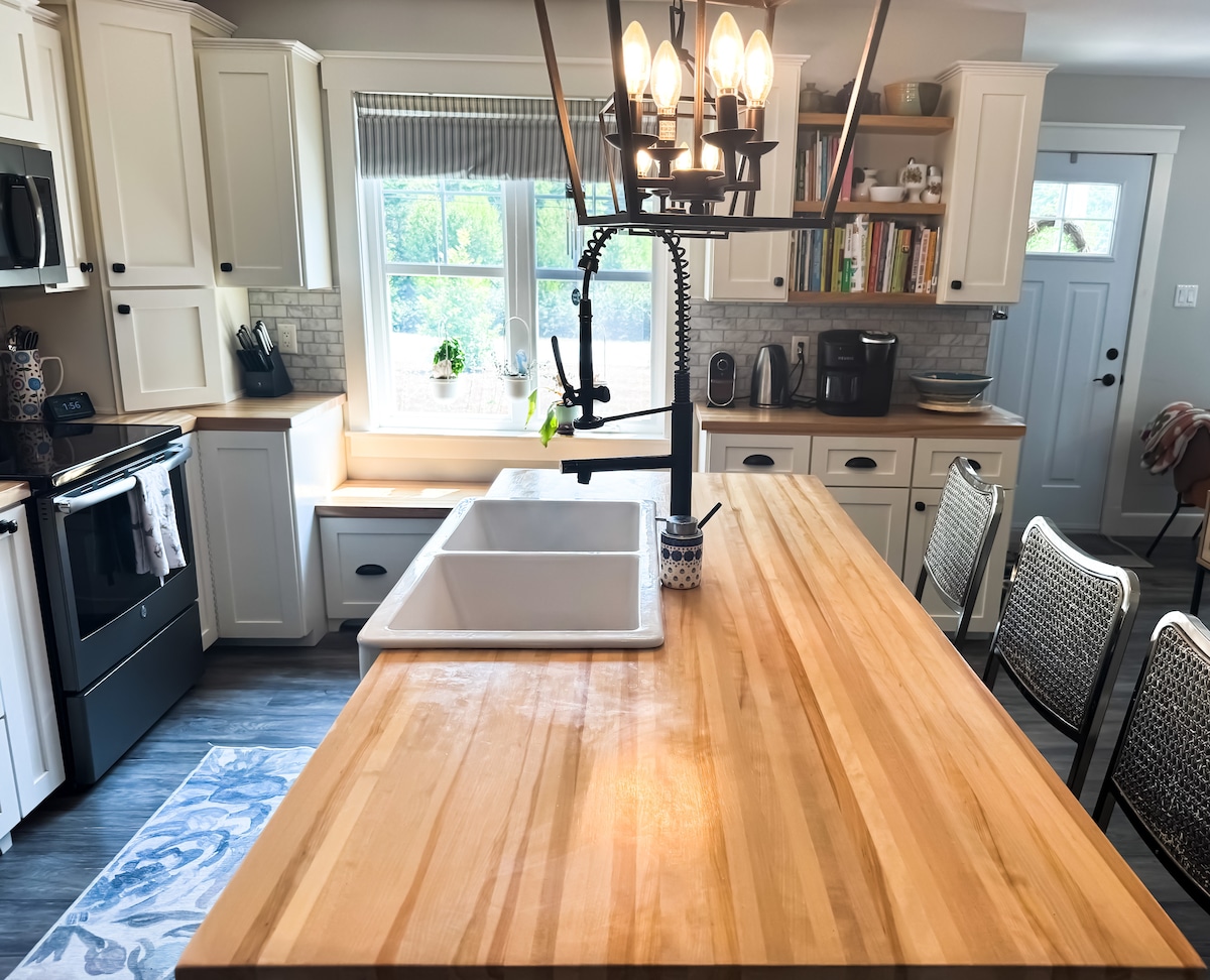 Nous sommes actuellement en train de construire/rénovation pour ajouter un plus grand salon, une cheminée et une chambre supplémentaire. J'ai les dates commençant en septembre ouvertes aux réservations. Pas de frais de ménage !! L'emplacement indique Tusket, c'est Quinan sur le lac Kegeshook. Le chalet est de style ferme avec tous les murs blancs. Grandes fenêtres et hauts plafonds permettant une grande lumière.. Le chalet est éloigné, calme et parfait pour se détendre. Le chalet est à 20 minutes en voiture de la sortie Tusket et à 35 minutes de Yarmouth