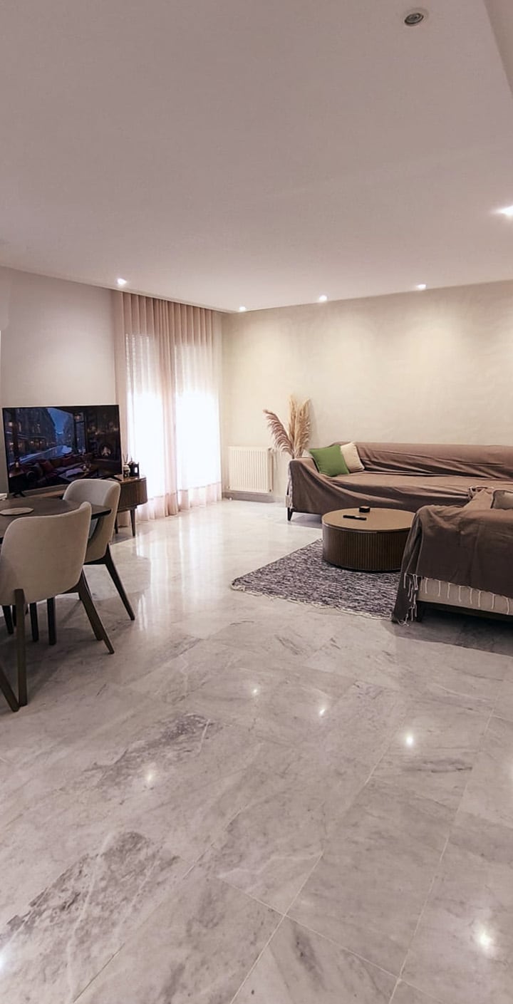 Appartement neuf, luxueux et parfaitement situé à Ennasr, dans une résidence moderne et sécurisée juste derrière clinique Amilcar. Profitez d’un salon lumineux avec grande TV, IPTV/Netflix et coin repas raffiné. La chambre offre un lit premium, de beaux rangements et une seconde TV. Cuisine moderne entièrement équipée, salle de bain élégante façon marbre. Fibre haut débit, clim dans chaque pièce, électroménagers neufs et parking privé. Un cadre chic et confortable pour un séjour inoubliable.