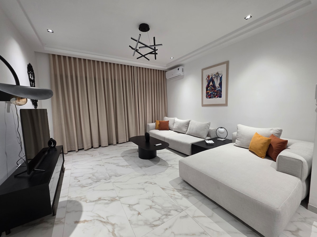 Découvrez ce bel appartement central et paisible, situé à Menzah 9, l’un des quartiers les plus chics de Tunis. Joliment décoré, il offre deux chambres confortables, une terrasse et un jardin privatif pour se détendre. Idéal pour un séjour professionnel, touristique ou médical Proche de toutes les commodités : commerces, cafés et transports. Un havre de tranquillité au cœur de la ville.