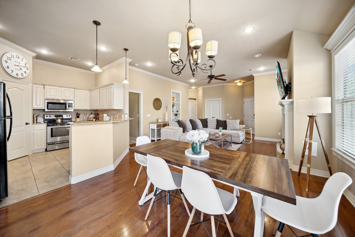 Au cœur de la NWA, cette maison nouvellement meublée sur l'I-49 offre de tout nouveaux équipements adaptés aux familles et se trouve à seulement 15-20 minutes du centre-ville de Bentonville, du Walmart AMP, de l'aéroport XNA, de l'U of A, du lac Beaver, des meilleurs sentiers cyclables et pédestres, et bien plus encore. Profitez de grandes téléviseurs, d'un dîner en plein air, de lits ultra-confortables, d'une table de billard, d'un ping-pong ou détendez-vous simplement en paix pendant que les enfants jouent dans la salle de jeux laser détachée à l'arrière. De plus, rechargez votre véhicule électrique gratuitement et obtenez une réduction sur la location d'un VTT électrique !