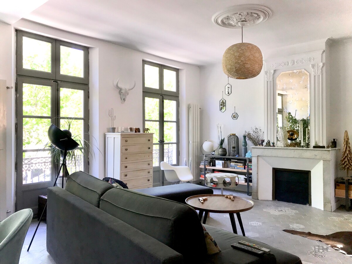 Appartement d'architecte luxueux design et unique, parking, dans un bâti haussmanien de charme, climatisation réversible gainable et literie haut de gamme confortable, tout équipé avec patio de 30m2. Idéalement situé au calme absolu, visitez la ville à pied : 4 minutes de la gare TGV et des arènes romaines, des monuments romains, profitez de la douceur de vivre du Sud et des chants d'oiseaux en étant proche de tout: cafés, terrasses, boutiques, musées... Tout à été pensé pour votre confort