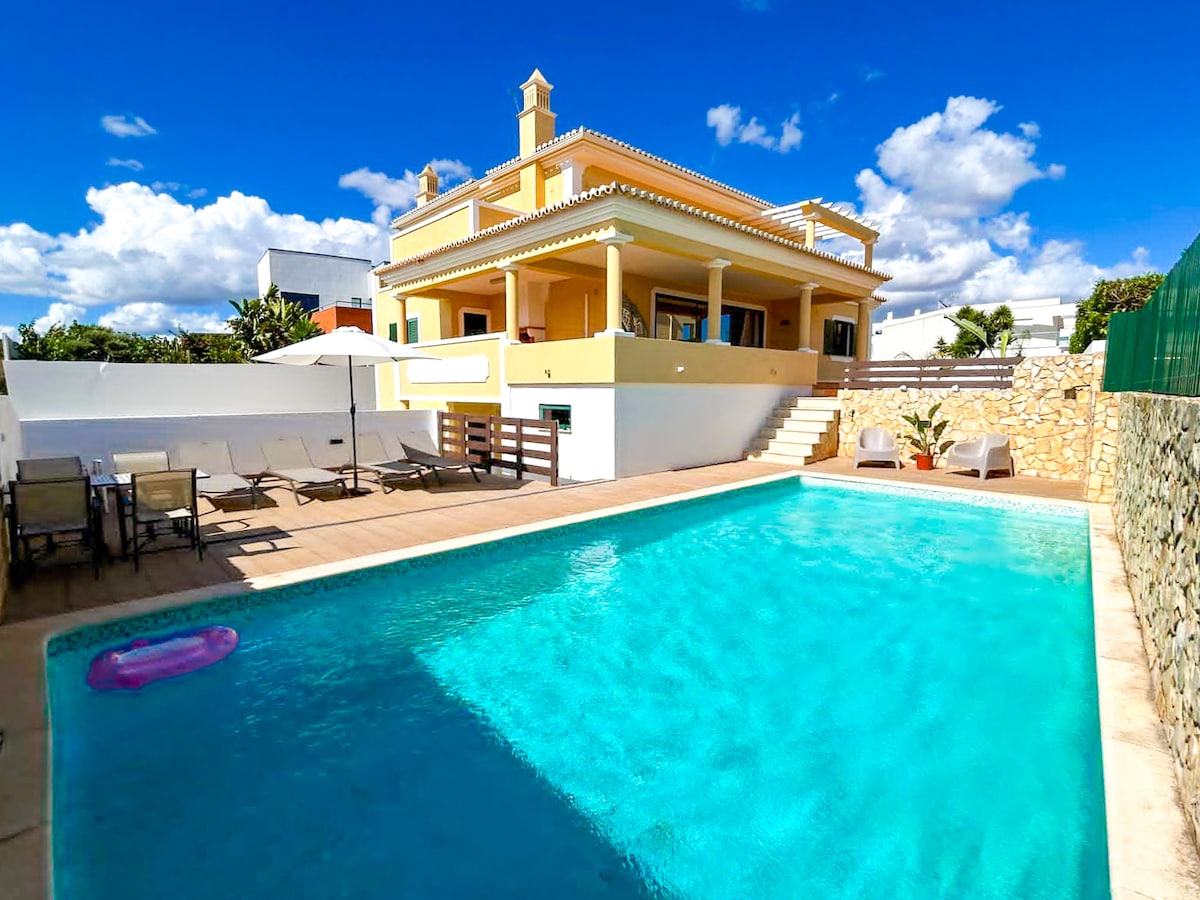 MAISON AVEC VUE SPECTACULAIRE SUR LA MER - ZONE SÛRE ET PAISIBLE. Grande piscine et piscine adaptée aux enfants. Internet sans fil. À quelques pas de certaines des plus belles plages des Algarves. Deux chambres avec salle de bain privée, salon, cuisine, WC, terrasse sur le toit et jardin privé (NOUVELLE CUISINE, NOUVELLES SALLES DE BAINS). À quelques pas de la vieille ville de pêcheurs Armação de Pêra avec commerces, restaurants, cafés. Profitez de l'incroyable sentier des falaises surplombant les célèbres plages de l'Algarve et les formations de falaises de sable. Vos vacances de rêve !