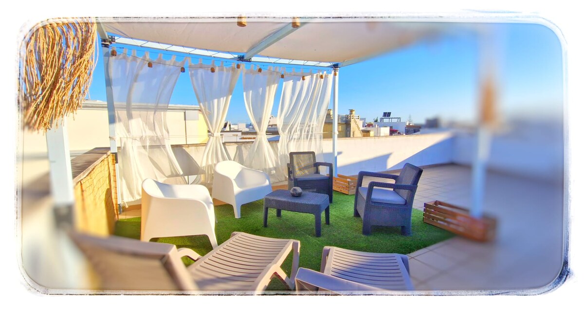 Le Loft s'ouvre sur une magnifique salle au plafond arrondie typique du vieil Olhão. Vous découvrez un salon et une cuisine ouverte équipée et aménagée. L'escalier sur la droite mène à la mezzanine où vous trouverez la chambre avec un grand lit très confortable. De la mezzanine, un escalier amène au toit terrasse de 40 m2 complètement équipé d'un barbecue, d'un salon de jardin, d'une table pour déjeuner ou dîner en plein air et de bains de soleil.