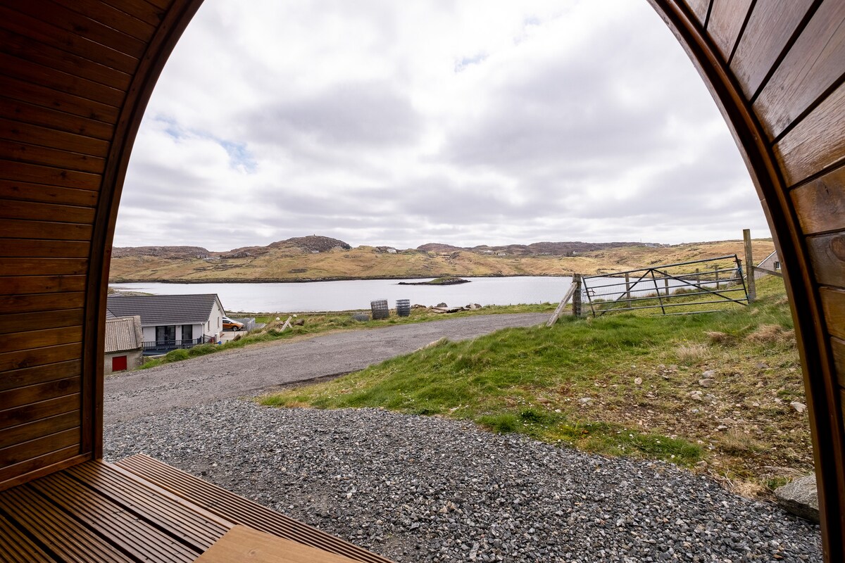 Your little bit of Hygge in Tiumpanhead, here on Lewis in the Outer Hebrides. Approximately 10 miles from Stornoway. Our beautiful pod has been lovingly crafted in Siberian Larch and is double insulated. We offer a hotel quality double bed. Sofa bed is NOT suitable for adults. Fully equipped kitchen, a luxury bathroom with rainfall shower. WIFI and SmartTV. 5 min walk to lighthouse and access to outstanding cetacean sightings/birdlife. Dark Skies for stargazing and Aurora Borealis.