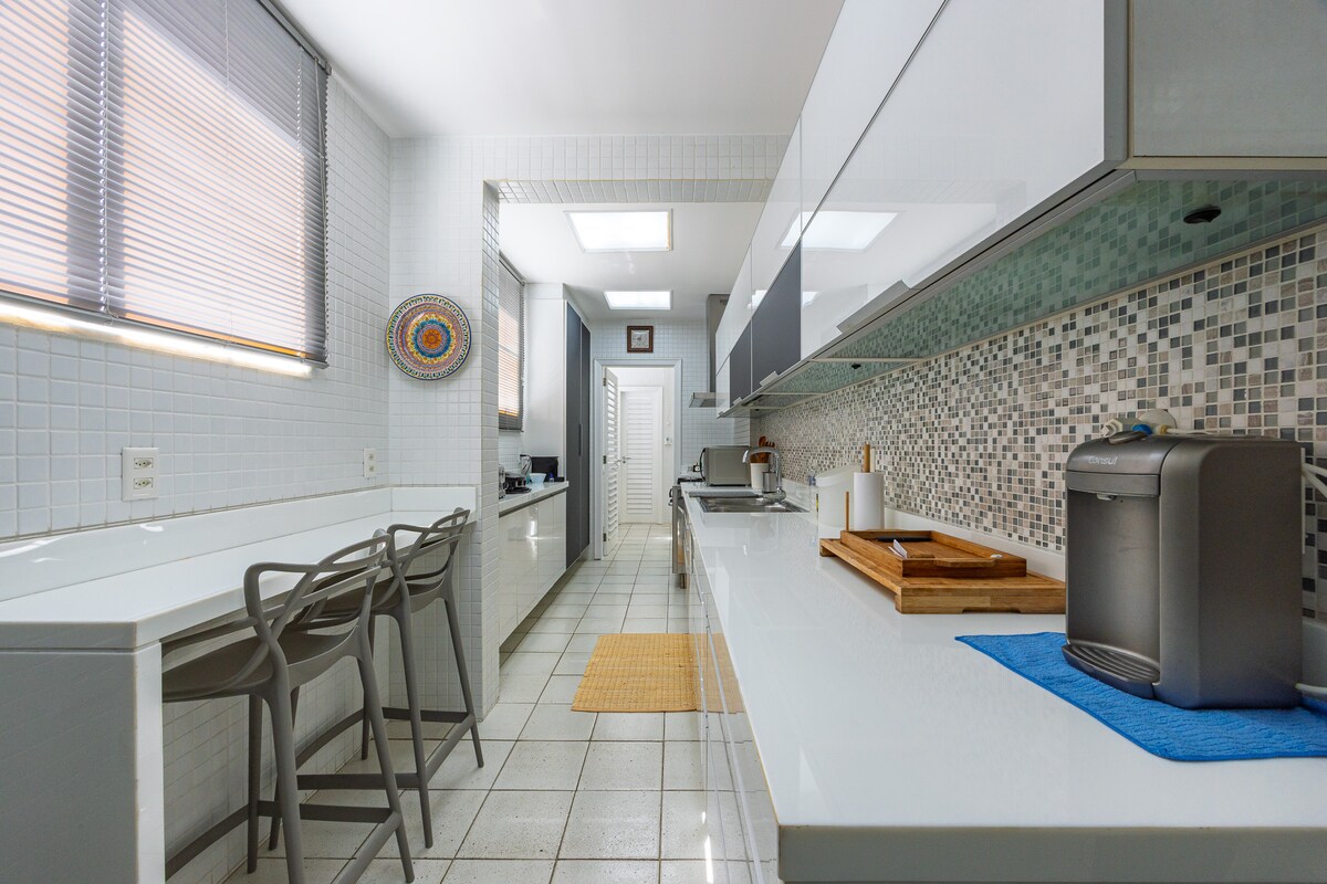 Lisez les 4 règles de la maison dans les sections « Ce que vous devez savoir » et « Afficher plus ». Points forts : - Vue fantastique sur la plage d'Ipanema et d'Arpoador - Une infrastructure de bâtiment avec piscine et sauna - Espace de garage pour 2 voitures - Réception 24h/24 et 7j/7 - Verrouillage par mot - 2 chambres, étant les 2 suites - Smartv ultramoderne dans le séjour, avec plus de 250 chaînes - Peut accueillir jusqu'à 6 personnes, 2 sur le canapé-lit du salon - Cuisine équipée et équipée - À 200 m de la plage d'Ipanema/de la plage d'Arpoador