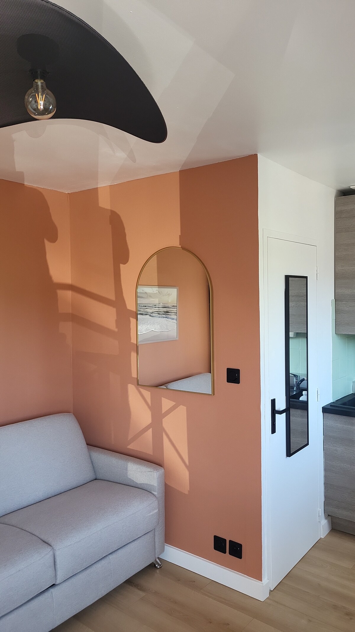 Deux pièces de 42 M2 à pied du bourg, des plages et des sentiers côtiers au 2eme et dernier étage. Il est composé : - d'un séjour avec balcon, canapé lit et coin repas, - d'une chambre séparée avec lit double en 140, - d'une cuisine séparée équipée d'un four, micro ondes, réfrigérateur, machine à laver le linge, cafetière, bouilloire, grille pain, - d'une salle de bain avec douche et WC. L'immeuble ne dispose pas d'un ascenseur. Seulement deux personnes peuvent tenir sur le balcon.