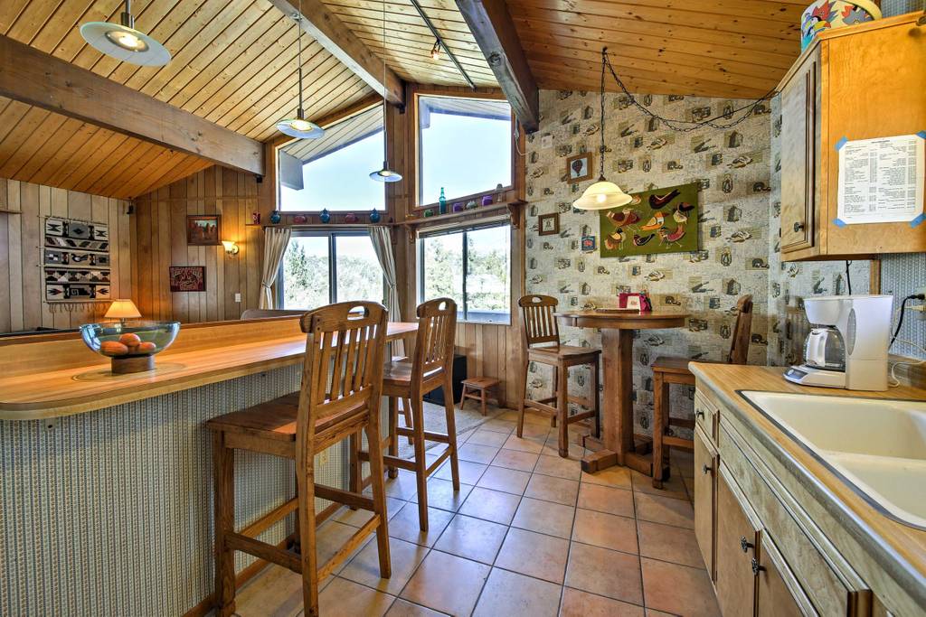 Venez vous installer confortablement dans ce chalet triangulaire du milieu du siècle, où vous pourrez enlever vos chaussures, détendre vos pieds, votre corps et votre esprit. Profitez paisiblement de toute la cabane. Il y a la climatisation centrale et le chauffage. Évadez-vous ici à A Lookout Lodge où vous serez entouré par la nature, les oiseaux chanteurs et les grands pins. Profitez du jacuzzi étincelant, faites griller de la nourriture, rêvez avec un bon livre. Jouez à des jeux classiques au coin du feu et créez des souvenirs inestimables. Imaginez un loft avec charpente en A qui vous attend pour vous blottir et rêver...