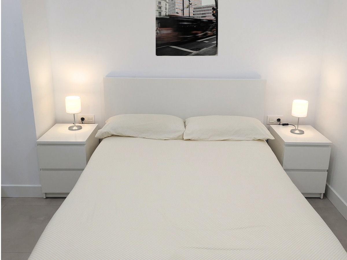 Profite de la simplicité de cet hébergement calme et central. Appartement rénové en 2021 dans le centre de Mungia, idéal pour les couples ou les familles. - 2 chambres (1 lit double dans chacune). - 1 salle de bain - Dressing - Salon - Cuisine Il n'y a pas de parking privé mais il est facile de se garer dans le quartier. C'est au quatrième étage SANS ASCENSEUR. À 13 km des plages de Bakio et Gorliz et à 16 km de Bilbao. À 10 km de l'aéroport de Bilbao. Parfait pour découvrir les environs de la province de Biscaye.
