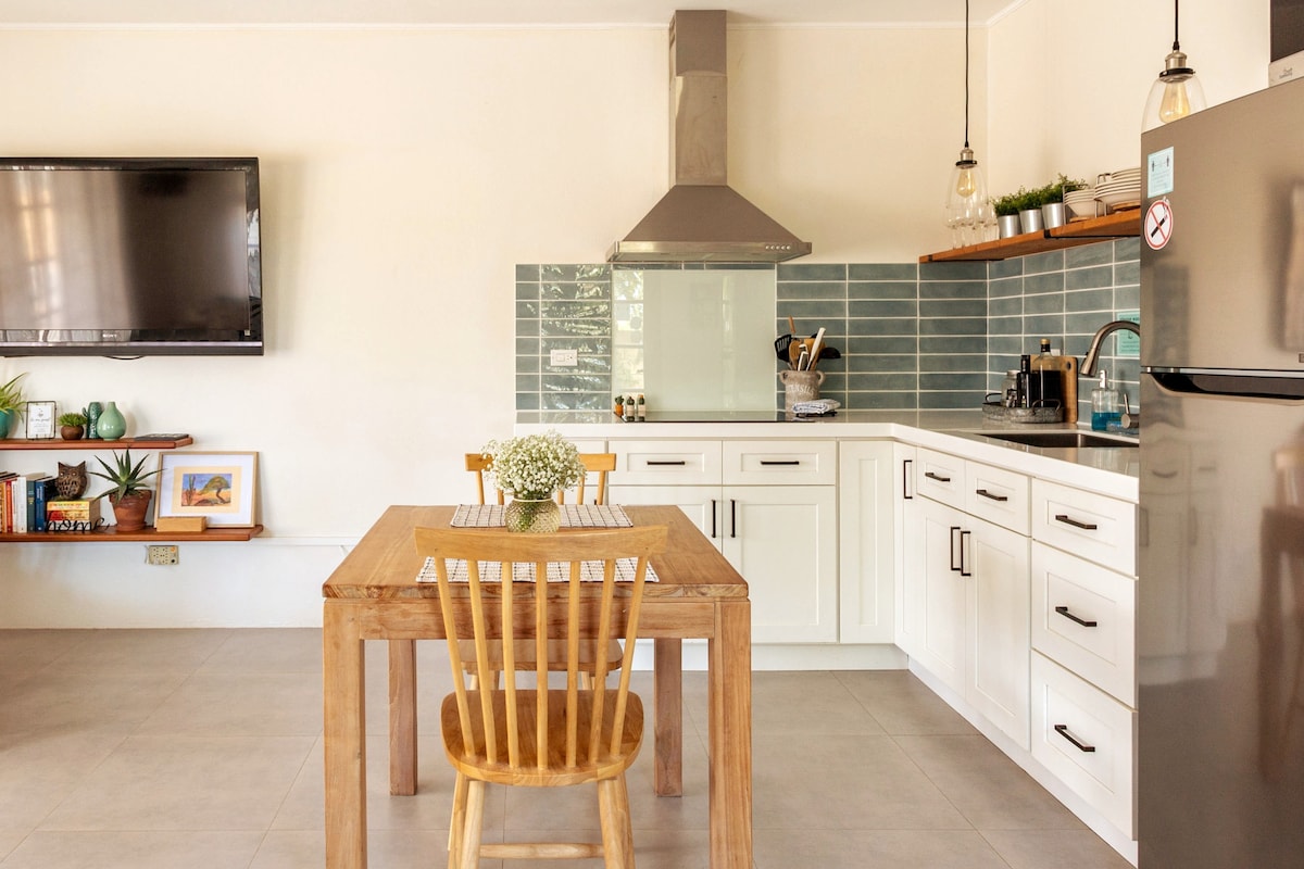 Séjournez parmi les habitants et loin de la foule, cette suite offre les équipements que vous désirez à un excellent rapport qualité-prix. Le studio est entièrement équipé avec une cuisine, ainsi qu'une grande terrasse de piscine et un jardin que vous partagerez avec notre famille dans un cadre privé et calme. Ajoutez à cela une laverie gratuite sur place, une douche extérieure, votre propre allée et un parking privé dans la propriété entièrement clôturée, nous offrons une valeur unique et exceptionnelle pour votre prochaine escapade. Notre oasis vous attend...