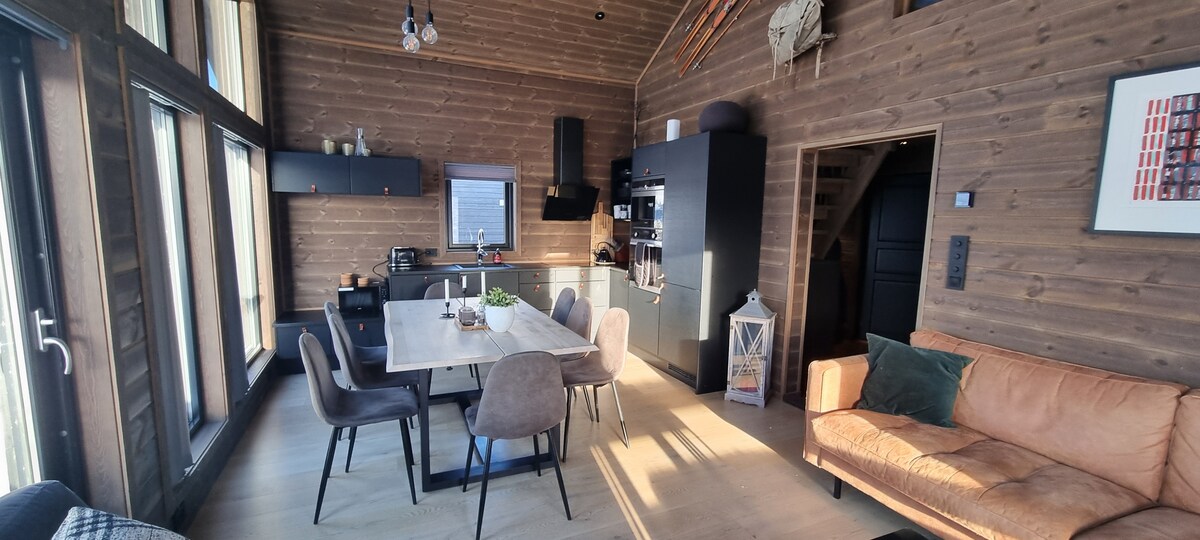 La cabane est neuve automne 2022, avec de grandes fenêtres qui attirent la nature dans la cabane. Terrasses de tous les côtés de la cabane pour profiter du soleil du petit matin au début de la soirée. Convient à 2 familles ou entre amis. Adapté aux enfants. Superbes promenades à partir de la cabine. Bortelid peut offrir des expériences en pleine nature sur des sentiers balisés, des sommets, de l'alpinisme, des pistes cyclables, de la pêche à la truite de montagne, de la location d'un kayak, d'un terrain de frisbee. 18 paniers. Mini golf. Installations de bain dans l'eau. Épicerie.
