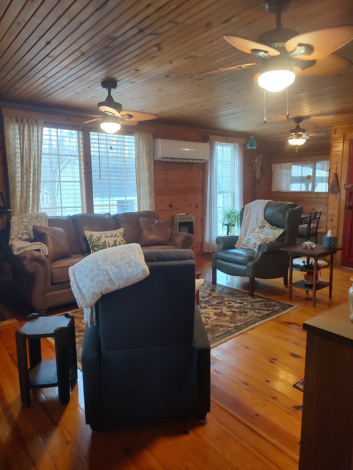 Our small cozy cabin, newly built in 2021, is stocked with all the essentials you'll need for your home away from home. We offer 1 bedroom and 1 loft, a fully equipped kitchen, free wifi, washer and dryer, a peaceful front porch, and a TV with access to Netflix, Disney+, ESPN+, Hulu, and more. We offer the best of town and country -- we are located in city limits for quick access to shops and restaurants, and other than our personal residence on the property, there are no neighbors in sight.