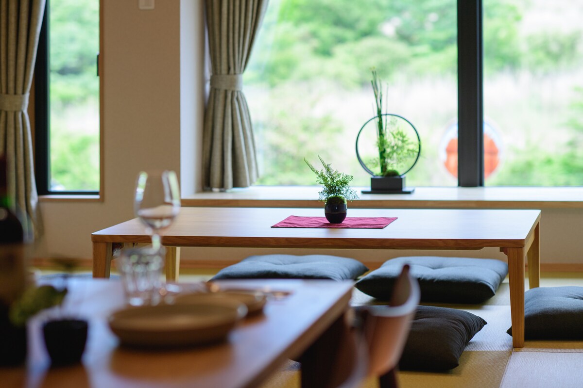 💰Profitez d'une réduction de 10 % sur les réservations de 3 nuits ou plus ! Soubokuan est une villa locative qui allie la beauté de l'architecture japonaise traditionnelle au monde moderne. L'espace moderne japonais de 165, 4LDK, peut accueillir jusqu'à 10 personnes. La cuisine entièrement équipée rend la cuisine en famille et entre amis exceptionnelle. Profitez d'un barbecue sur la terrasse en harmonie avec la nature. Une connexion Wi-Fi et une machine à laver sont également disponibles, ce qui la rend idéale pour les séjours de longue durée.
