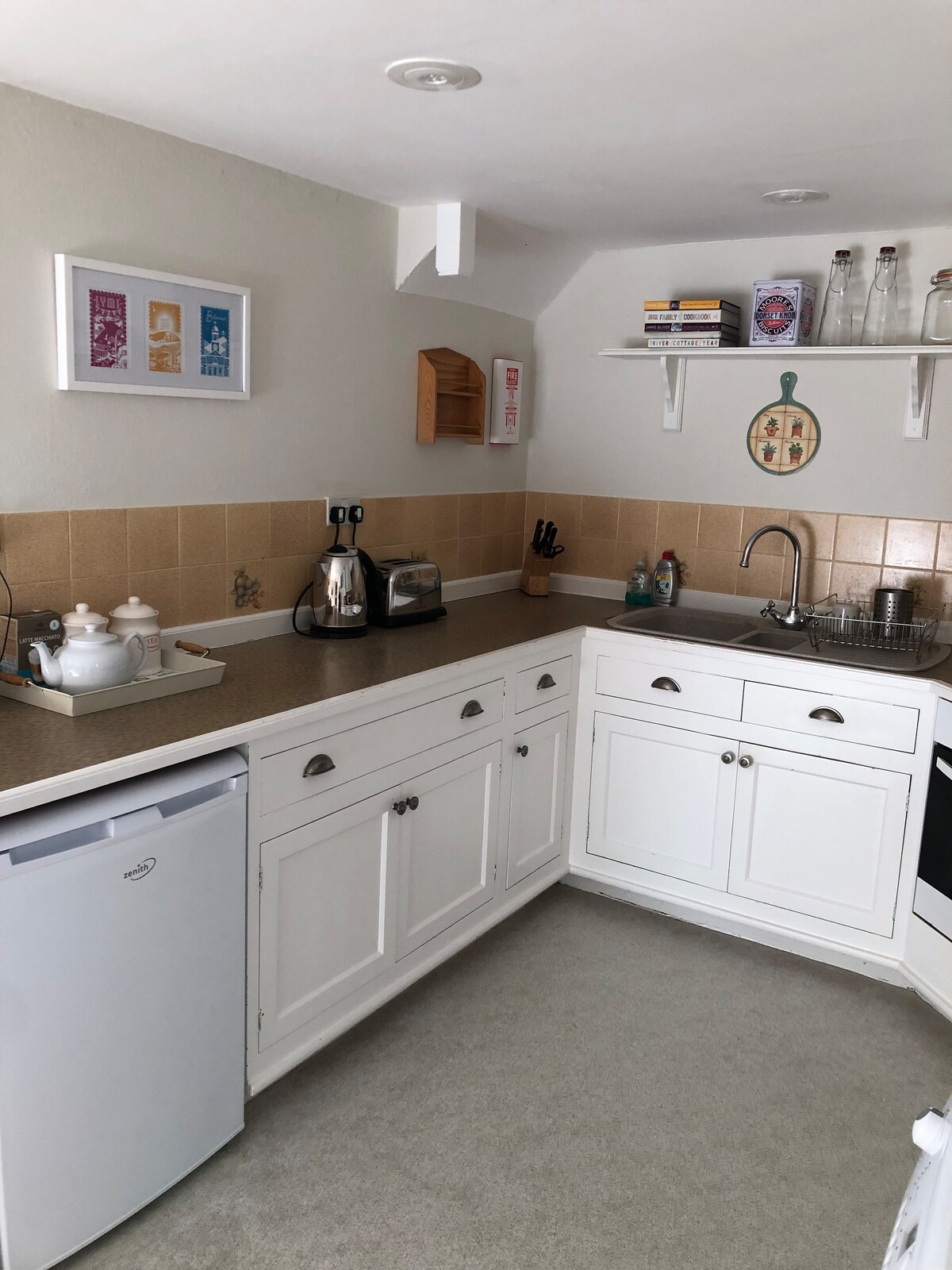 Une grange récemment convertie en maison d'une chambre. Plafond en pente à poutres apparentes dans la chambre/le salon, cuisine privée en bas. Salle d'eau spacieuse, petit WC séparé. Pas de télévision mais WiFi. Entrée privée de la voie du village dans la propriété. Au cœur de la Bride Valley, donc parfait pour les marcheurs et les amoureux de la nature toute l'année. Côte jurassique à 5 miles. L'une des régions les plus riches du Royaume-Uni pour les forts de colline et les anciens travaux de terrassement. Très fière de sa maison, donc malheureusement pas d'animaux de compagnie et pas de fumeurs.