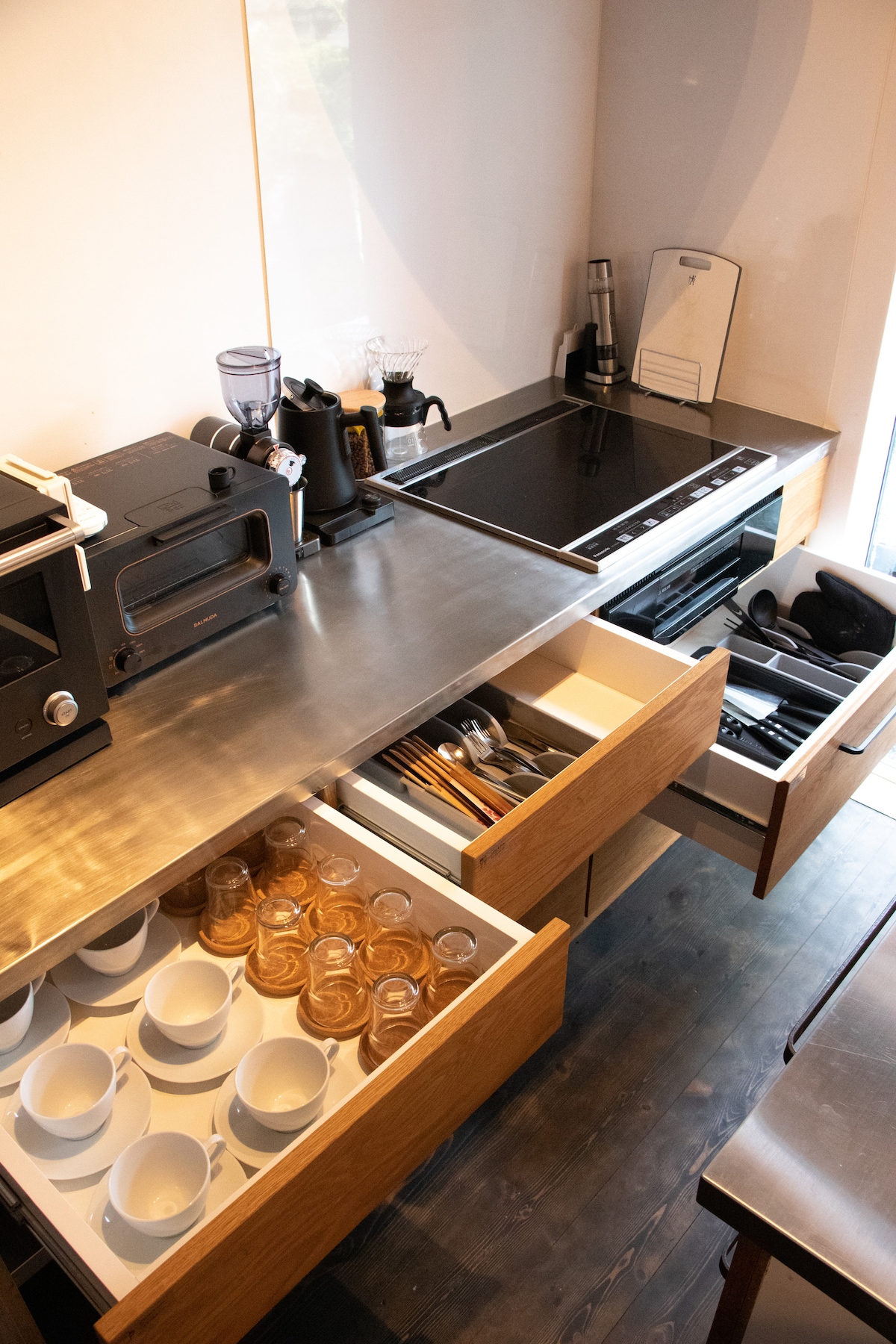 山や水田に囲まれた、南阿蘇村ののどかな場所にコテージが6棟建ちました。 近くに温泉の日帰り利用ができる「南阿蘇久木野温泉 四季の森」や道の駅「あそ望の郷 みなみあそ」があり、南阿蘇鉄道や白川水源など観光地へのアクセスも抜群。パワースポットでもある高千穂までは車で約1時間で行けます。 建物は自然との調和を大事にし、床や天井は無垢板、壁はホタテの漆喰壁、カウンターや洗面台は杉の一枚板を使うなど、自然素材を使用。 また全開放の折戸扉から新鮮な空気がたっぷり取りこめ、テラスではBBQが楽しめます。 水は地下80メートルから汲み上げた天然のミネラルウォーター。おいしさの秘密は宿の目の前に広がるカルデラの光景にあり。天然フィルターを通し長い時間かけて育んだ地下水を是非味わってみて。 昼寝や読書などのんびり過ごしたり、家族や友人たちとにぎやかにバーベキューを楽しんだり、冬は薪ストーブを囲んで団らんしたりなど、思い思いの時間をお楽しみください。