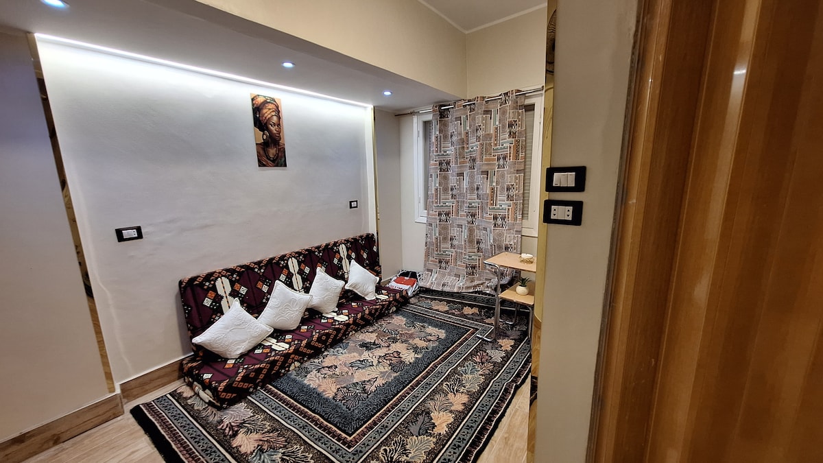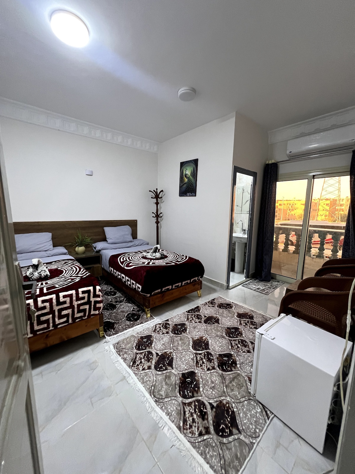 Situé à Assouan, dans le quartier d'El-Aqad Extension sur la rue Benzina El Taawon (avant la mosquée El Farouk), notre bâtiment moderne propose des chambres privées confortables et des appartements meublés, parfaits pour les voyageurs, les familles et les groupes. La propriété dispose de 6 étages et de 6 chambres bien équipées, conçues pour ressembler à une auberge de jeunesse confortable avec l'intimité d'un appartement. Chaque logement comprend la climatisation, le Wi-Fi, une cuisine entièrement équipée et l'accès à un salon commun avec une télévision