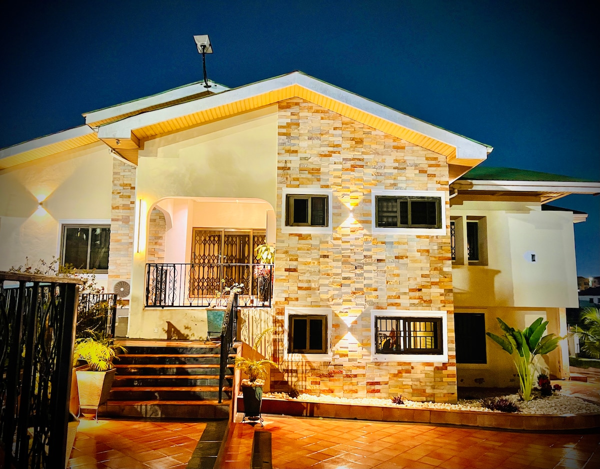 - La maison entière rien que pour vous - Votre propre cinéma privé - Chambres avec lits Super King Size - 2 espaces de vie différents avec salle à manger - Cuisine entièrement équipée - Lave-linge pour votre lessive - Surveillance par vidéosurveillance 24h/24 et 7j - Aide/assistant personnel 24 h/24, 7 j/7 - Parking sécurisé gratuit - Chaque chambre possède son propre balcon - Chambres climatisées ; - Wi-Fi gratuit. - Tout comme le linge de lit et les serviettes L'aéroportinternational de Prempeh est à 9 miles de la villa. Évadez-vous du bruit de la ville et venez dans ce havre de paix.