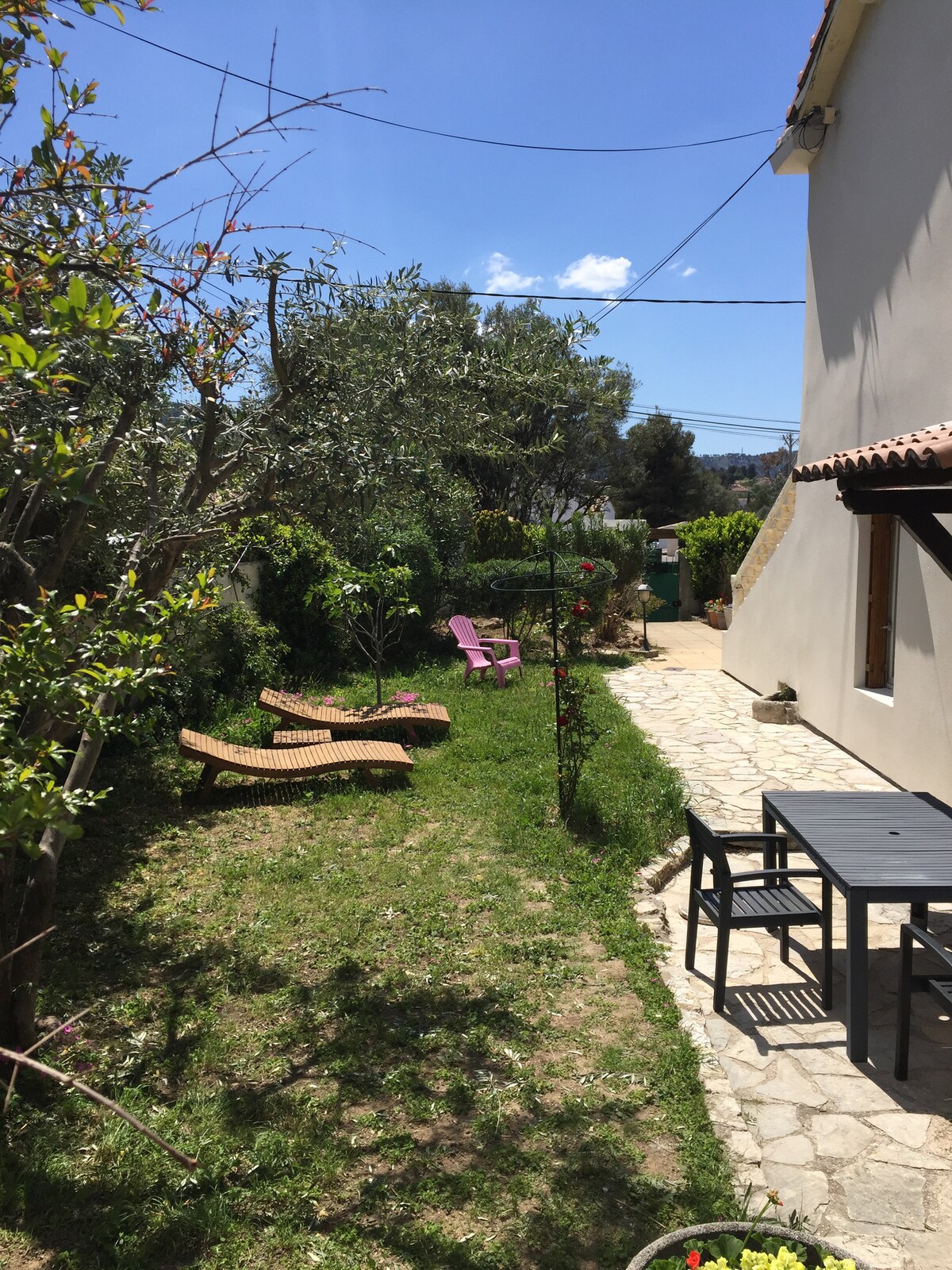 A 3 km d'Aubagne et ses santonniers, 30 mn d'Aix-en-Pce et son centre historique, 30 mn de Marseille et son Mucem, 30 mn de Cassis et ses Calanques et 20 mn de La Ciotat et ses plages, notre petite maisonnette provençale de 35 m2 est confortable et douillette, avec son parking, sa loggia, son joli jardin ombragé de 1000 m2 et sa vue imprenable sur les collines. Située en face du site de La Font de Mai vous pourrez également découvrir tous les sentiers de randonnées de Pagnol autour de Garlaban.