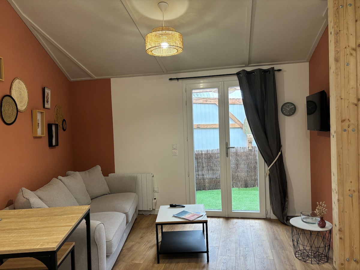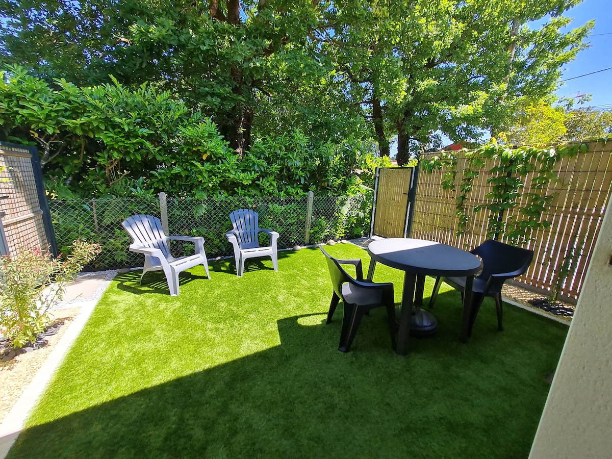 Au RDC d'une résidence calme et sécurisée, ce Joli T2 de 42 m2 est entièrement rénové et meublé à neuf. Lumineux, confortable et bien équipé il est prévu pour 3 personnes, BB compris. Il dispose d'une chambre avec lit double et placard. La pièce principale est équipée d'un canapé BZ convertible (matelas Bultex). Lit parapluie/matelas/chaise haute dispo sur demande. A l'extérieur, vous profiterez d'un agréable jardinet de 20m2 environ. 1 place de stationnement privative est face au logement.