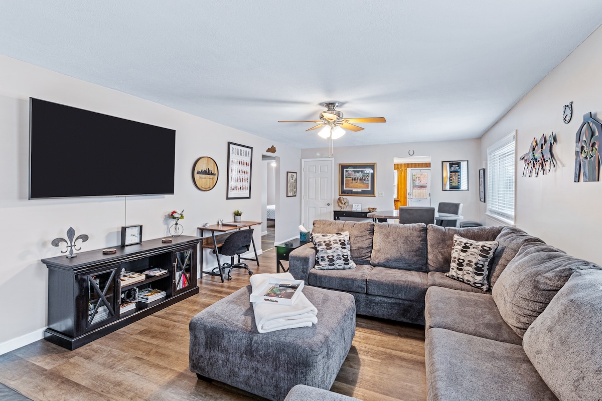 Près de Churchill Downs (7 minutes), de l'Université de Louisville (5 minutes), du centre-ville (10 minutes), du centre de convention (10 minutes), du parc des expositions (4 minutes), et à proximité des restaurants, bars et cafés. La maison dispose de deux chambres avec lits queen size et d'un canapé-lit dans le salon. Profitez d'un café ou d'une soirée de détente sur la terrasse arrière. La cuisine est entièrement équipée et l'espace de vie ouvert offre un excellent espace pour socialiser. L'art et la décoration fabriqués localement sont exposés, ce qui ajoute au caractère unique du logement. Pas de réservations locales s'il vous plaît !