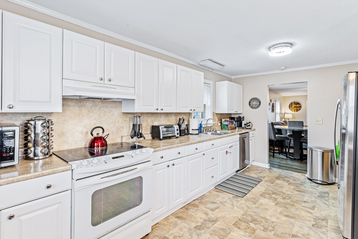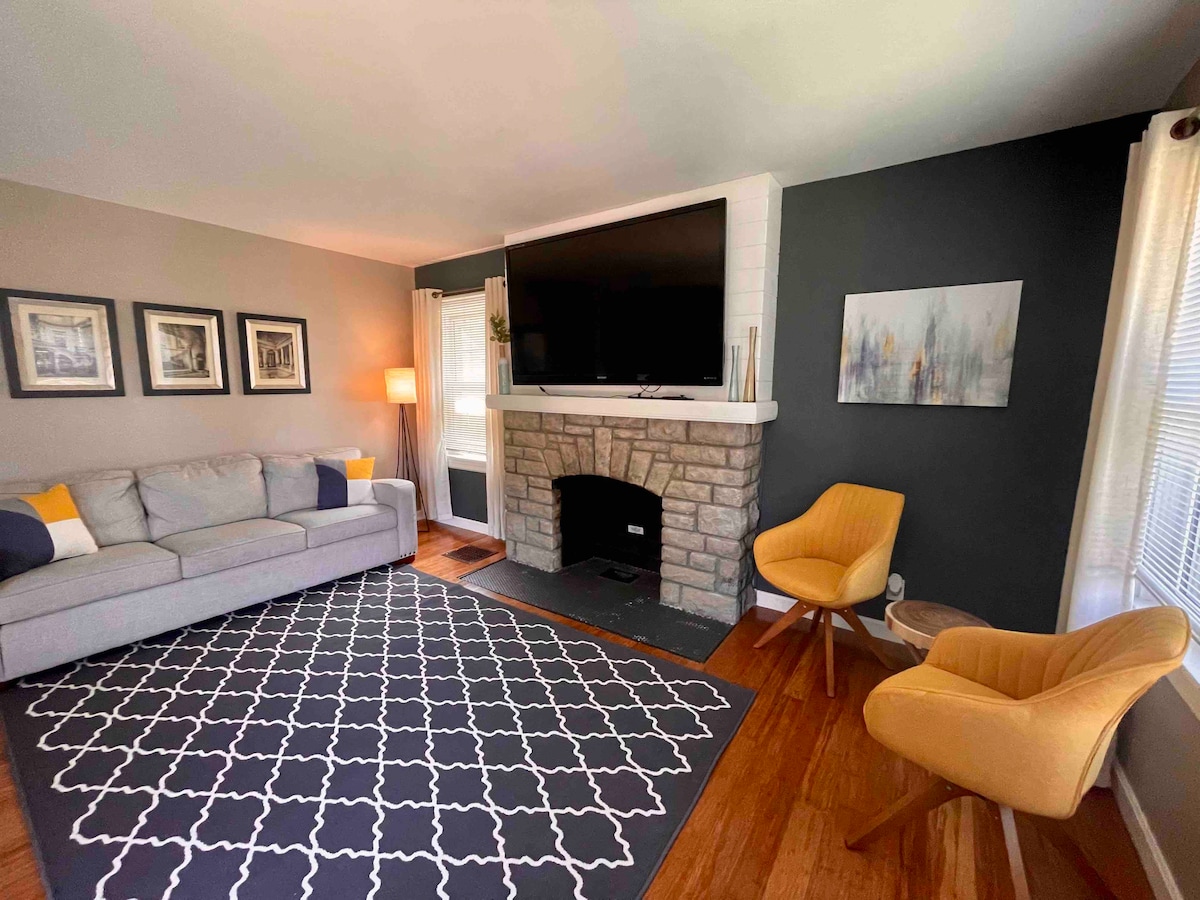 The Cypress Cottage is nestled in a peaceful neighborhood and conveniently located moments away from Louisville attractions such as Nulu, Caverns, Churchill Downs, and Bourbon Trail. Designed thoughtfully to give cozy, yet modern vibes, features that stand out: ✔5 Beds ✔2 Full Baths ✔Remodeled Kitchen ✔Dining & Breakfast Area ✔Fireplace ✔Game room ✔2 Smart TVs ✔Fast Wi-Fi (500 Mbps) ✔Washer & dryer ✔Carport ✔Firepit ✔Private Backyard ✔Outdoor Grill Book with us and you will be glad you did!