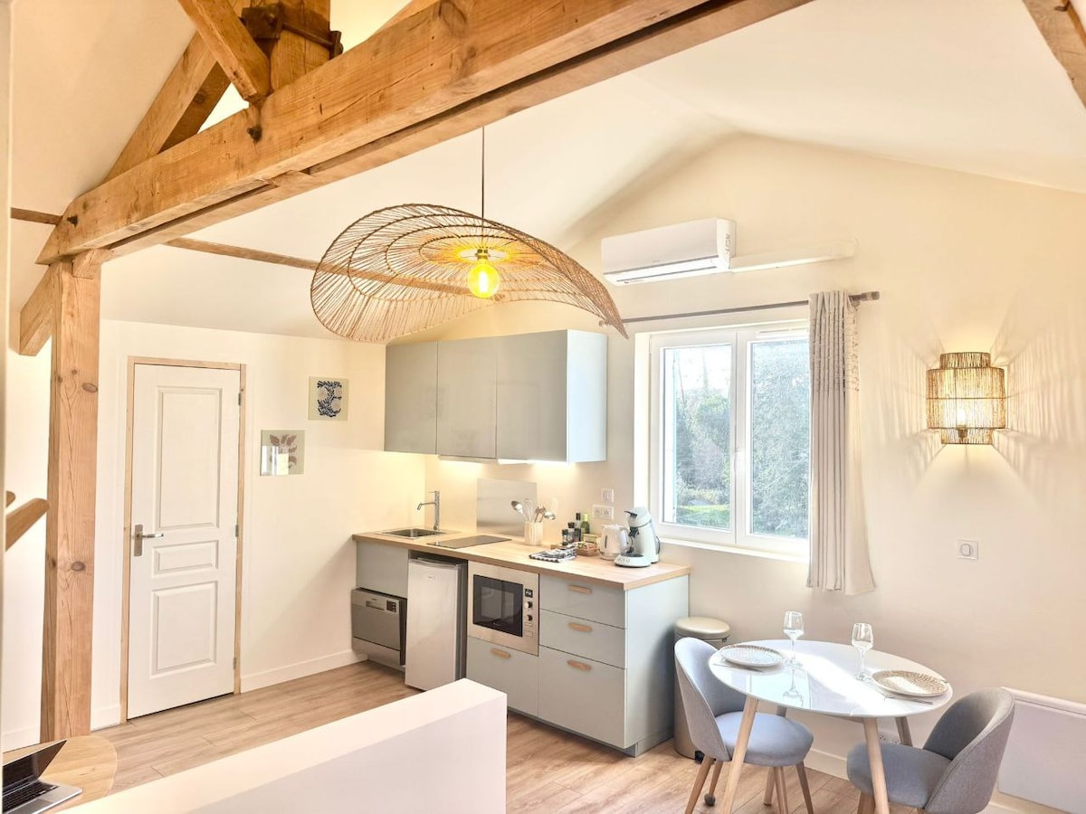Studio indépendant spacieux tout confort et terrasse et jardin privatif. Nous mettons tout en oeuvre pour que votre logement soit parfaitement propre et désinfecté pour chaque nouvel arrivant. Vous serez au calme et proche de tout. A 1,5 km des plages. Votre logement est équipé tout confort, nous vous prêterons des vélos pour vous déplacer dans de magnifiques paysages. Vous pourrez en options accéder au jacuzzi ou à la piscine.Le logement n'est pas accessible aux personnes à mobilité réduite