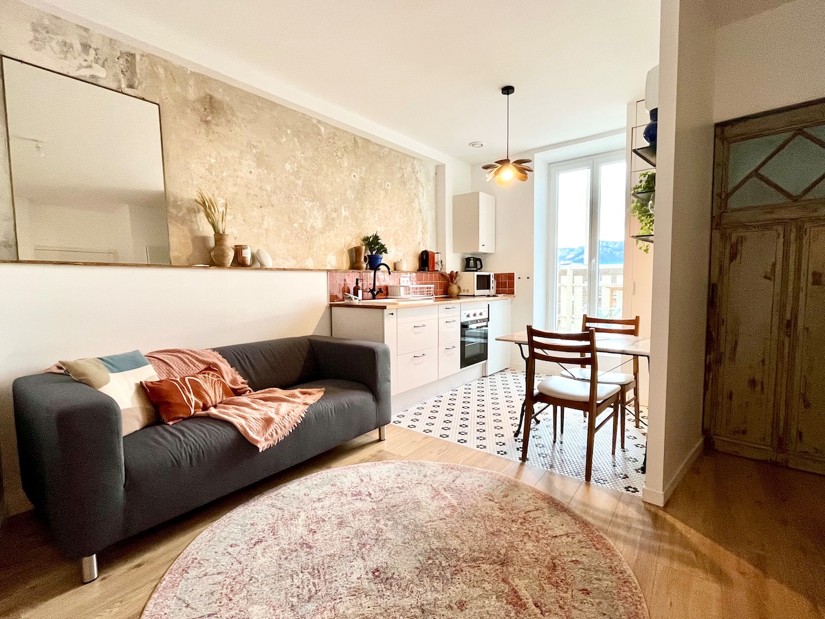Charmant petit appartement climatisé entièrement rénové, à deux pas du centre ville de Voiron avec balcon et vue panoramique ! Il a été pensé pour que votre séjour soit le plus agréable possible et avec tout le confort nécessaire L’appartement se situe au deuxième étage sans ascenseur d’un petit immeuble surplombant le centre-ville, il est baigné de lumière tout au long de la journée