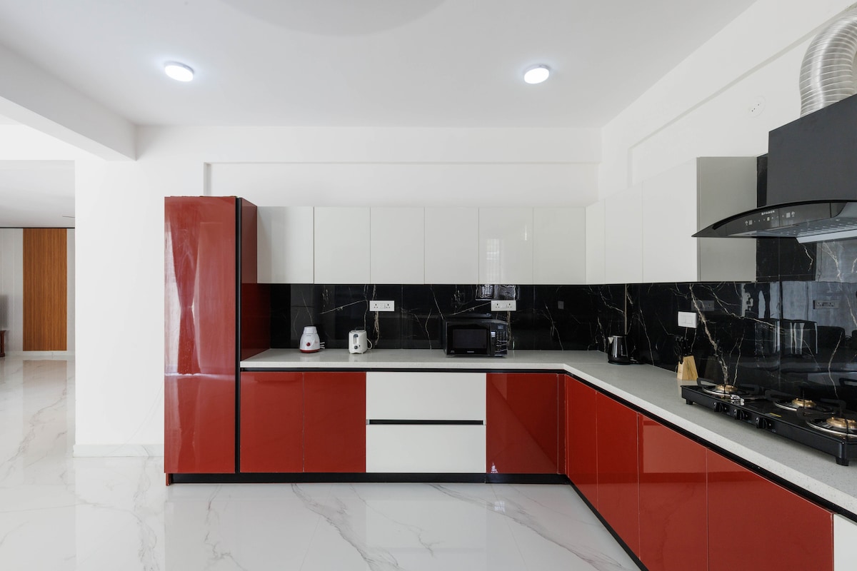 Découvrez un luxe exquis dans notre penthouse au nord de Bangalore, idéalement situé près de Manyata Tech Park, de Bhartiya City, de Sobha City et de diverses ZES. Avec Hebbal Ring Road à seulement 5-6 km et l'aéroport BLR accessible à moins de 30 minutes en voiture, notre penthouse offre commodité et élégance. Profitez d'une vue imprenable, de toutes les commodités modernes et de la culture urbaine animée à votre porte. Votre séjour parfait à Bangalore commence ici Pour votre divertissement, l'abonnement Netflix et Amazon est inclus.