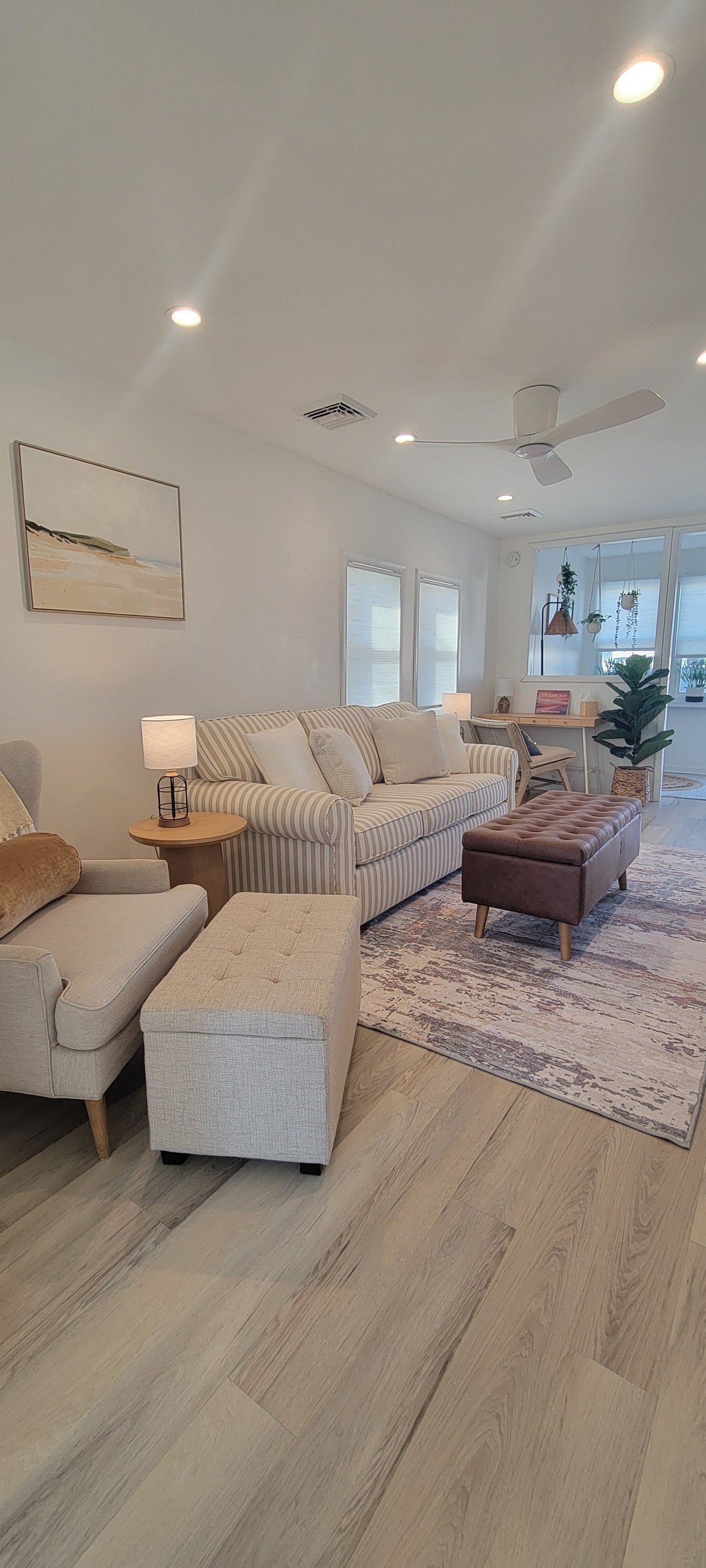 Nous sommes un Airbnb 5 étoiles. Nous avons travaillé dur pour gagner cela et plus dur pour le garder. Notre objectif est de fournir l'expérience la plus propre et la plus belle dans les Wildwood. De beaux couchers de soleil tous les soirs. Les équipements comprennent une cuisine complète, un réfrigérateur à température négative, un lave-vaisselle et tous les ustensiles. Lave-linge et sèche-linge inclus. Chambre principale avec lit King size et douche carrelée privée. Salon avec coin repas. Les deux téléviseurs sont intelligents, Hulu, Netflix, etc.