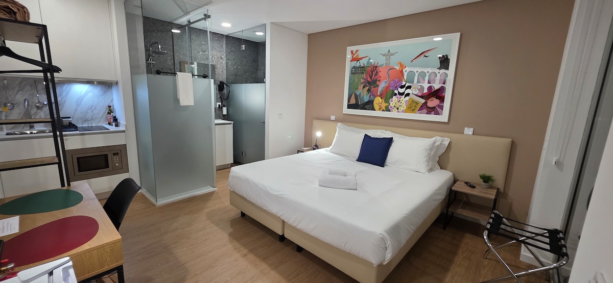 Découvrez le charme d'Aveiro à Carioquinha, un studio confortable au rez-de-chaussée d'une maison traditionnelle. Combinez confort moderne et authenticité locale avec le Wi-Fi, la climatisation et un jardin privé : votre retraite tranquille au cœur de la ville. Idéal pour se détendre, explorer et découvrir la véritable essence d'Aveiro.