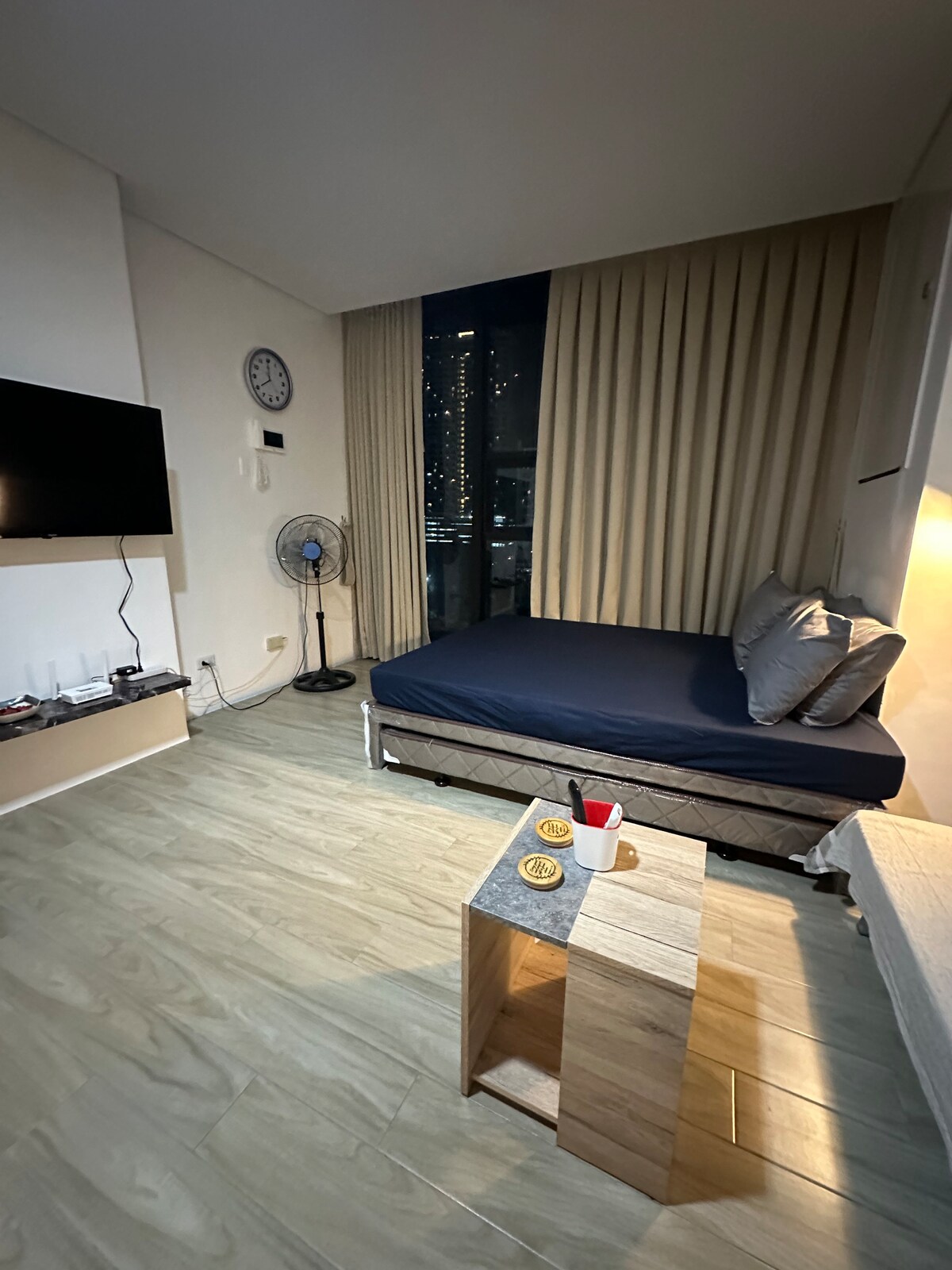Offrez-vous le luxe de notre appartement d'une chambre. Détendez-vous dans un espace spacieux avec un lit king-size moelleux, une cuisine bien équipée et une salle de bain relaxante avec une baignoire. Admirez la vue panoramique depuis votre havre de paix privé. Améliorez votre productivité grâce à un espace de travail dédié avec une connexion Wi-Fi haut débit. Profitez d'un accès exclusif aux équipements du bâtiment : salle de sport, piscine, centre d'affaires et grand parking. Notre joyau situé au centre-ville offre commodité et confort, vous permettant d'explorer la ville sans effort.