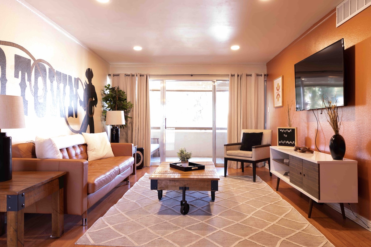 Bienvenue au cĆur de Scottsdale et dans votre retraite de luxe de deux chambres dans le dĂ©sert. Passez vos journĂ©es Ă vous prĂ©lasser au bord de la piscine chauffĂ©e du complexe hĂŽtelier et vos nuits Ă admirer le coucher de soleil depuis votre patio privĂ©. Ou faites une courte promenade jusqu'Ă la vieille ville, oĂč des dizaines de galeries d'art, de restaurants, de boĂźtes de nuit et de boutiques haut de gamme vous attendent. Quelles que soient vos vacances idĂ©ales, nous avons le plaisir de vous inviter dans votre appartement design, le refuge parfait aprĂšs de longues journĂ©es et nuits Ă profiter de tout ce que notre belle ville offre.
