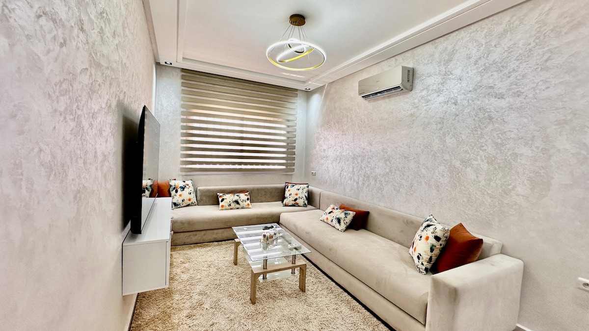Découvrez l'élégance près de la Plage à notre appartement sécurisé avec piscine privée et une vue mer à Agadir À proximité de l'école de surf "Banana Surf" avec cafés et restaurants à deux pas. À quelques pas de la plage, et à seulement 10 minutes de Taghazout et 13 minutes d'Agadir, notre oasis vous offre un séjour parfait entre relaxation et exploration. Plongez dans le luxe moderne avec toutes les commodités, tout en étant parfaitement situé pour explorer les trésors naturels de la région