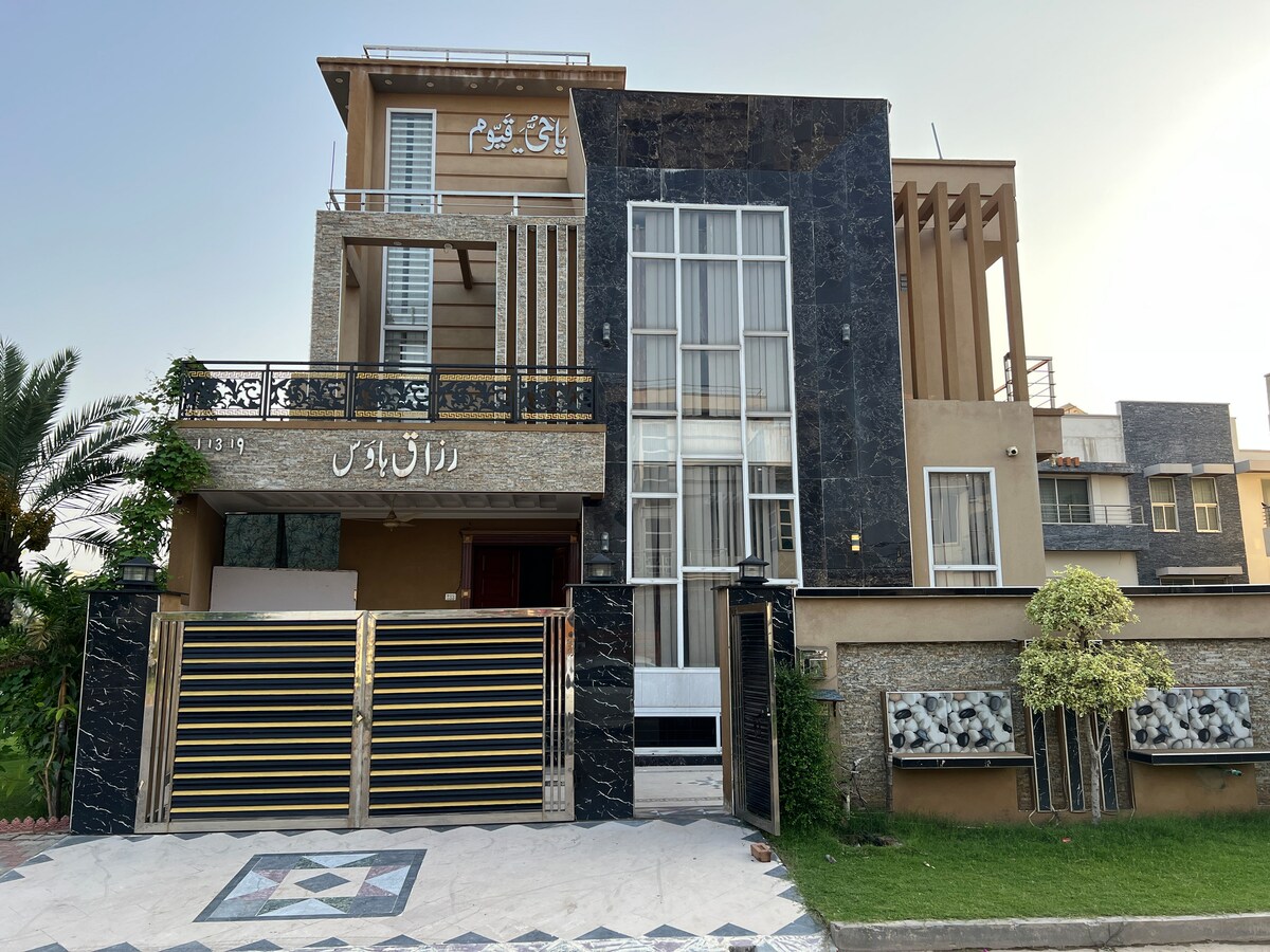 Séjournez dans notre spacieuse maison à Citi Housing Jhelum - 2 chambres king size avec cuisine, salle à manger, salon et salon. - Profitez de salles de bains privatives, de thé gratuit et d'un garage dédié. - Eau Nestlé, collations, WiFi, Netflix, sauvegarde UPS et livraison de repas à la demande. - Situé au cœur d'un quartier de luxe : à pied des meilleurs restaurants, banques et magasins. Parfait pour les voyageurs en solo, les familles et les voyageurs d'affaires. - Possibilité de réserver des chambres simples supplémentaires également disponibles pour accueillir plus de voyageurs.