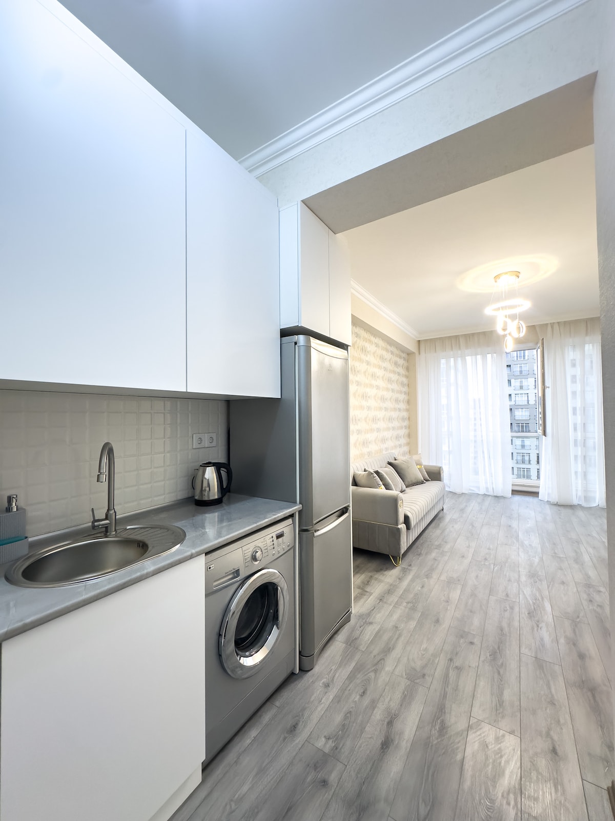 Découvrez Bakou depuis notre magnifique studio avec vue sur le boulevard ! À seulement 5 minutes à pied du front de mer, à 10 minutes à pied du centre commercial Deniz et à 5 minutes en taxi du centre-ville. Niché dans une nouvelle résidence sécurisée avec un concierge, profitez de la commodité d'un supermarché sur place au rez-de-chaussée. Profitez du centre de remise en forme/spa (non inclus). L'appartement dispose d'une chambre, d'un lit convertible dans le séjour et d'une douche moderne et confortable.