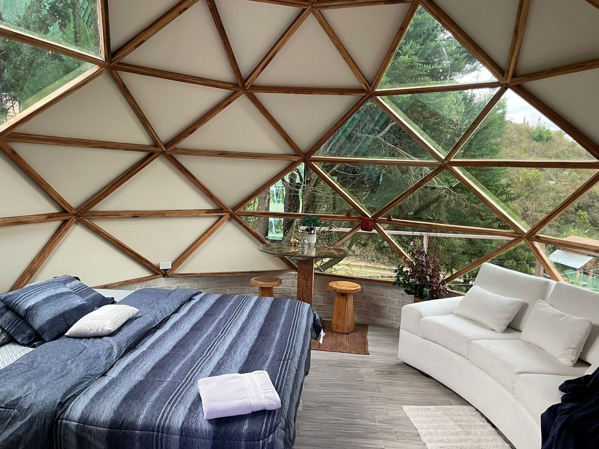 Nous offrons des expériences uniques à nos clients, de l'expérience de dormir dans des DÔMES GÉODÉSIQUES et vous pouvez ajouter plusieurs services supplémentaires pour rendre votre séjour UNIQUE : 1.- Shot de canelazo de bienvenue et concert de luciérnagas, 2.- voir passer le froid autour d'un feu de camp dans la terre, 3.- profiter de notre nourriture traditionnelle, 4.- recevoir une conférence de familiarisation avec les chevaux