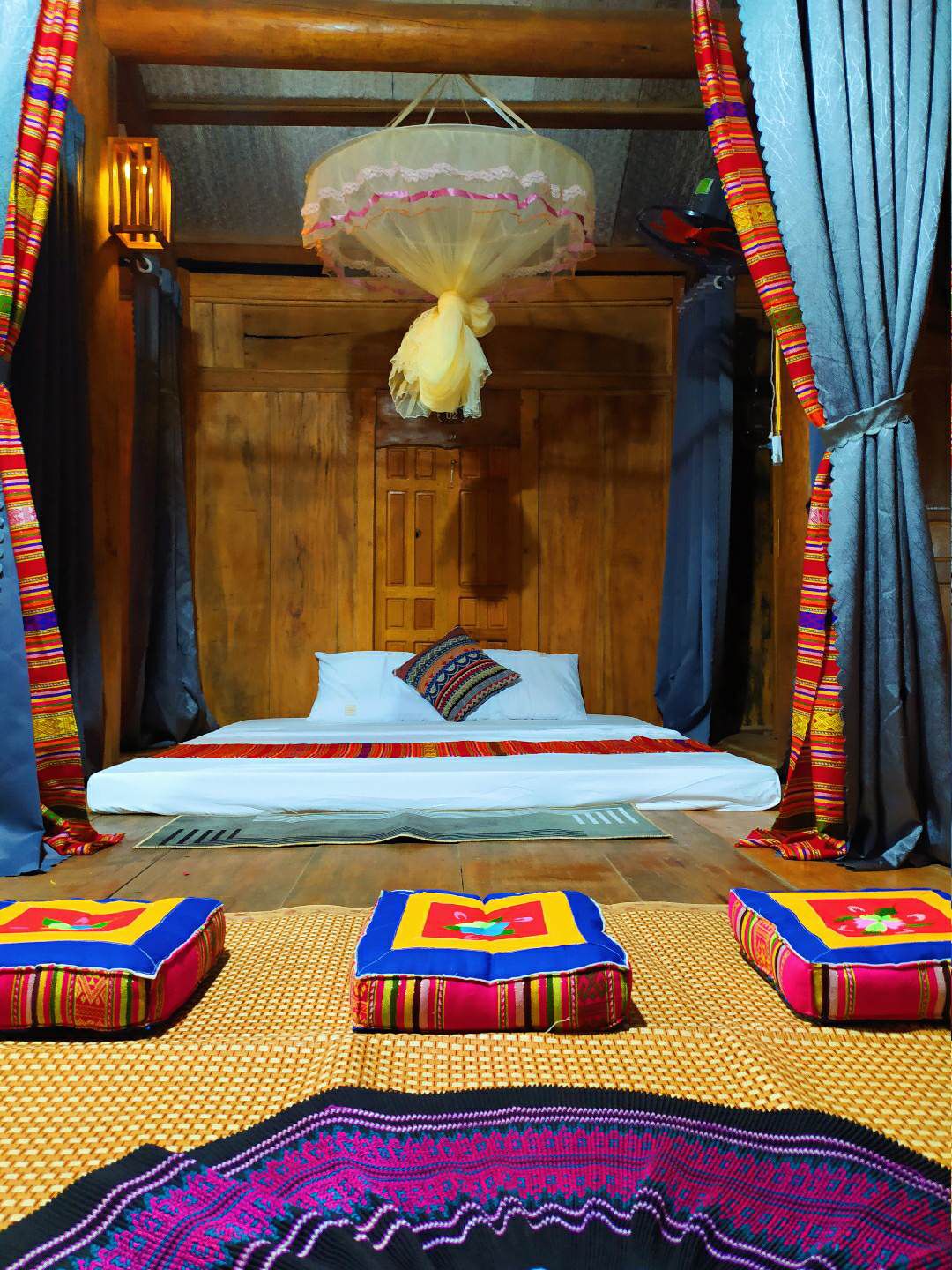Discover our unique homestay, a nearly 100-year-old stilt house with indigenous architecture and handcrafted furnishings. Spanning 155m², it comfortably accommodates 10 guests. Breakfast included. Each room offers 10 spring mattresses, reading lights, and fans. Three private bathrooms feature wooden bathtubs, hot/cold water, hairdryers, and eco-friendly toiletries. Located near a serene stream and just 600m from Hiêu Waterfall – the most famous in the area.