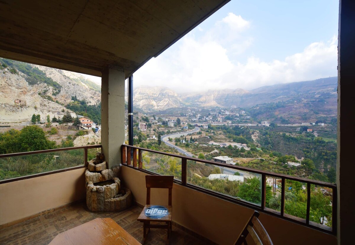 Maison d'hôtes privée et confortable avec vue imprenable sur la vallée de Qanoubin. Situé au cœur d'un espace naturel privé ayant ses propres jardins fruités, sa forêt privée de cèdre et sa propre rivière. L'ambiance est magique ! Domaine sûr et privé où vous pourrez profiter de la vue, du bruit de l'eau courante ainsi qu'un feu de camp, un four à pizza, un barbecue et un barbecue.