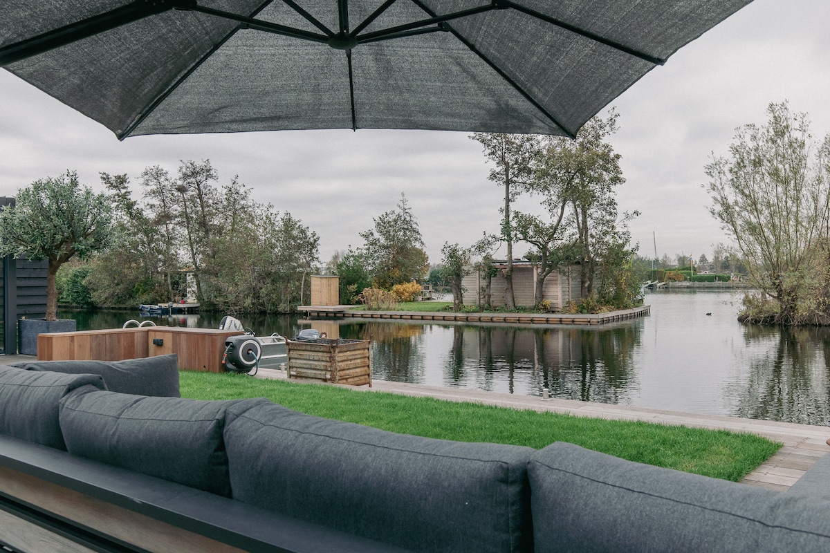 Villa moderne en bord de mer dans un endroit de rêve, à seulement 20 minutes d'Amsterdam. La maison d'hôtes principale est entièrement équipée et comprend un grand parking, une terrasse, un barbecue, un grand jardin, un trampoline et une piscine privée, tous entourés d'eau de baignade claire. Un endroit parfait pour les familles, les amis ou les voyageurs d'affaires à la recherche d'espace et de tranquillité. La propriété contient également quelques petits bâtiments réservés aux propriétaires, séparés de la zone réservée aux voyageurs.