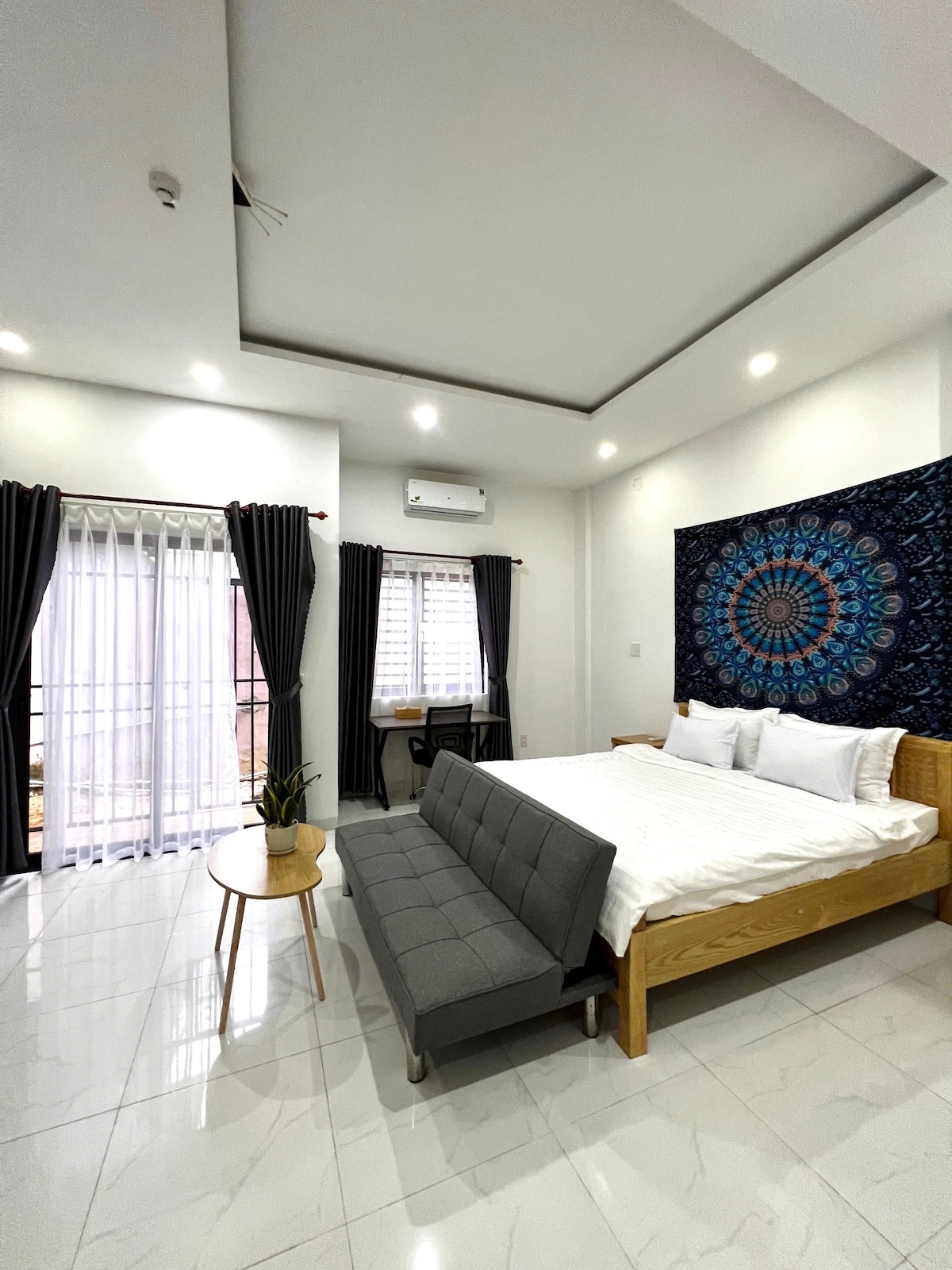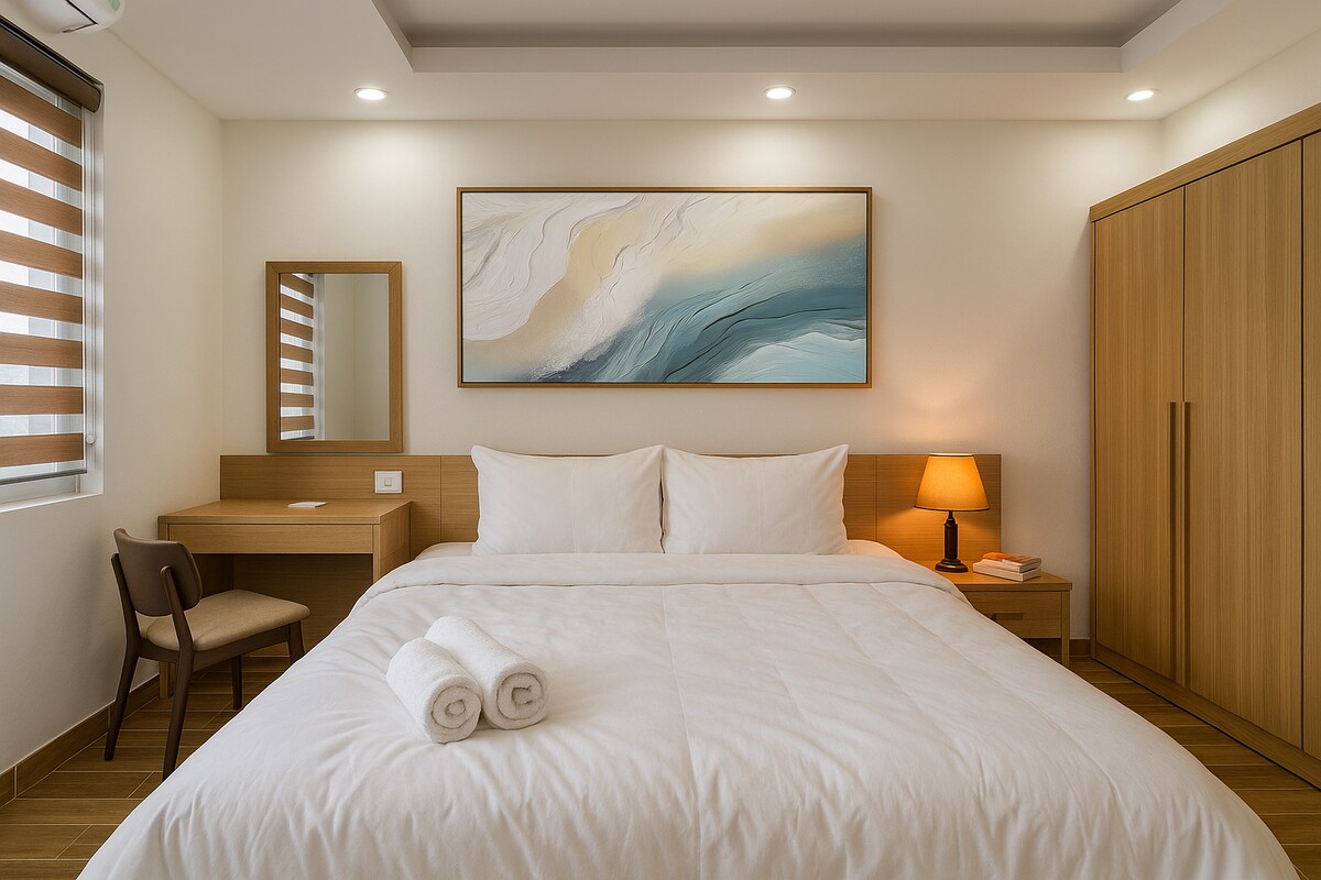 STUDIO SPACIEUX Bonjour cher, merci de l'intérêt que vous portez à notre appartement.🤗 🌱Notre appartement est situé dans un endroit EXTRÊMEMENT CALME à Da Nang, à environ 400 m de la plage 🌱Vous pouvez vous inscrire pour des séjours de courte ou longue durée. « LA VUE SUR L'OCÉAN » vous fera vous sentir comme chez vous !😊 🏡 🏡Cette chambre au rez-de-chaussée est équipée d'un bar à jus biologiques rafraîchissants juste à l'avant, parfait pour commencer votre journée.