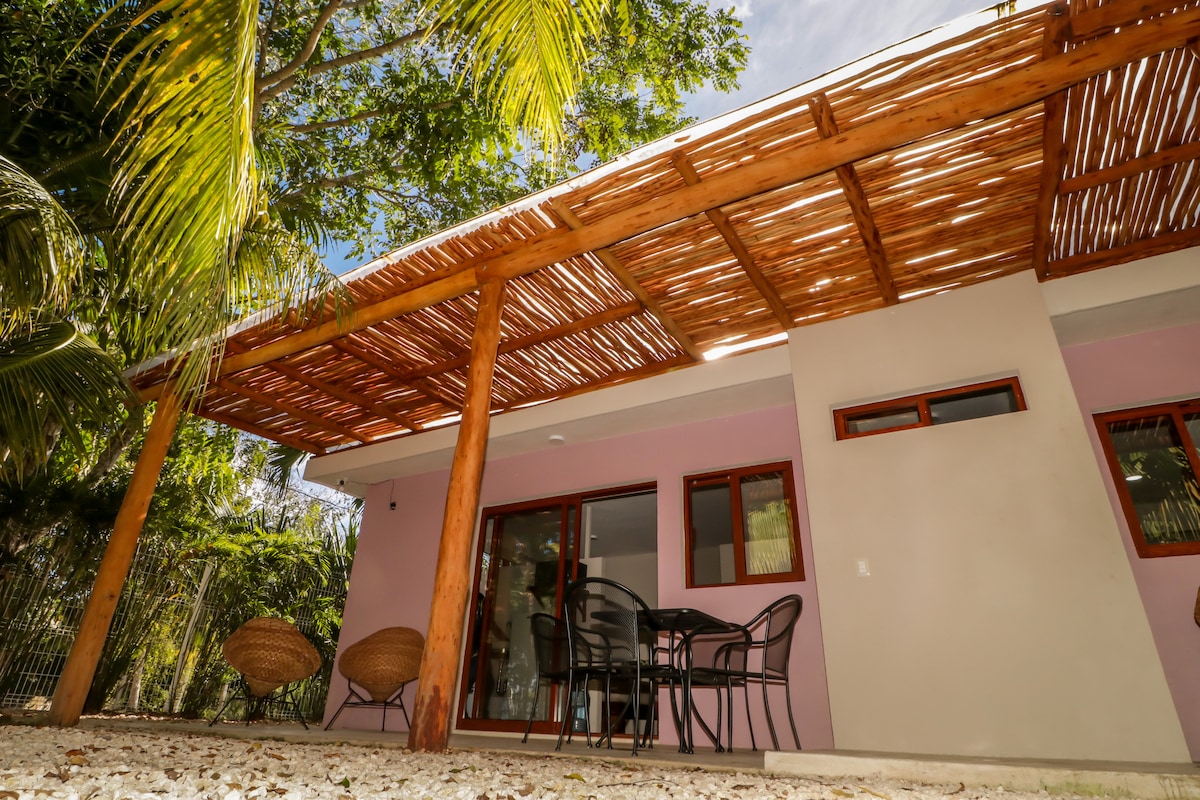 Yaya Suite vous offre une expérience inoubliable face à la mer à Mahahual. Récemment rénové, maintenant avec un toit en béton et une climatisation moderne. Profitez du bruit des vagues depuis votre lit, design de luxe, eau chaude, Smart TV et wifi rapide. Comprend 10 % de réduction au Yaya Beach Club avec des chaises longues, de la nourriture et des cocktails face aux Caraïbes.