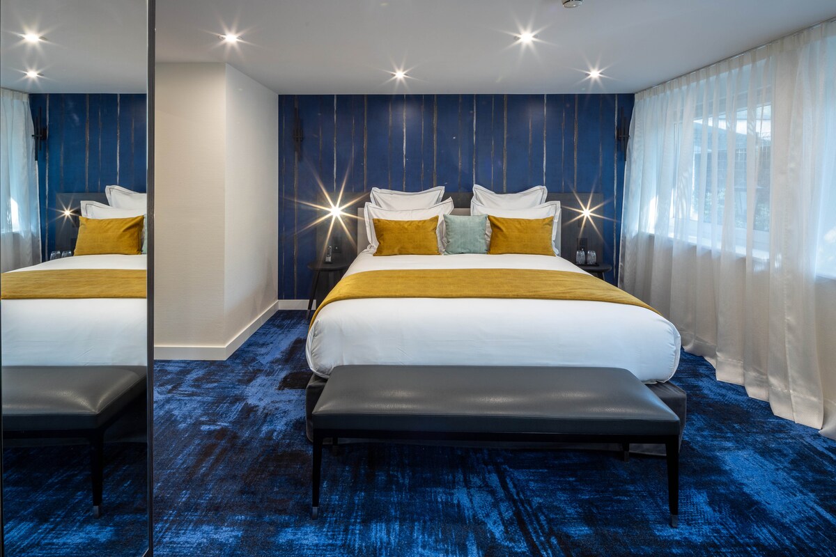 Chambre double, spacieuse, équipée d'une literie haut de gamme. Équipée d'une baignoire balnéothérapie et d'un grand lit double.