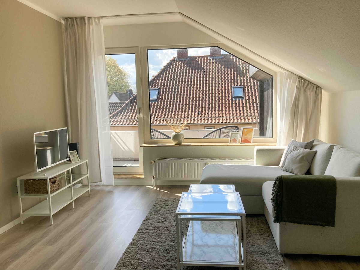 Appartement calme et confortable (environ 32 m2) dans une maison jumelée (1er étage) dans le quartier d'Eversten (15 min. à vélo du centre-ville). Il offre pour max. 4 personnes, mais ne convient pas aux enfants en bas âge. Un escalier escamotable dans la chambre mène à une 2ème chambre (1,5 m max. Hauteur du plafond) et la récamière dans le salon-salle à manger offre un autre endroit pour dormir.